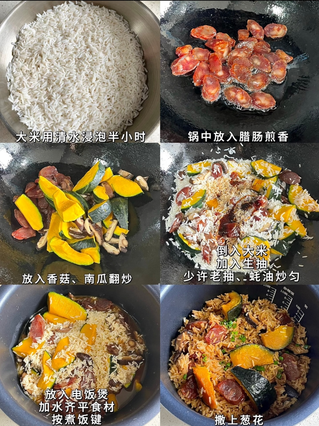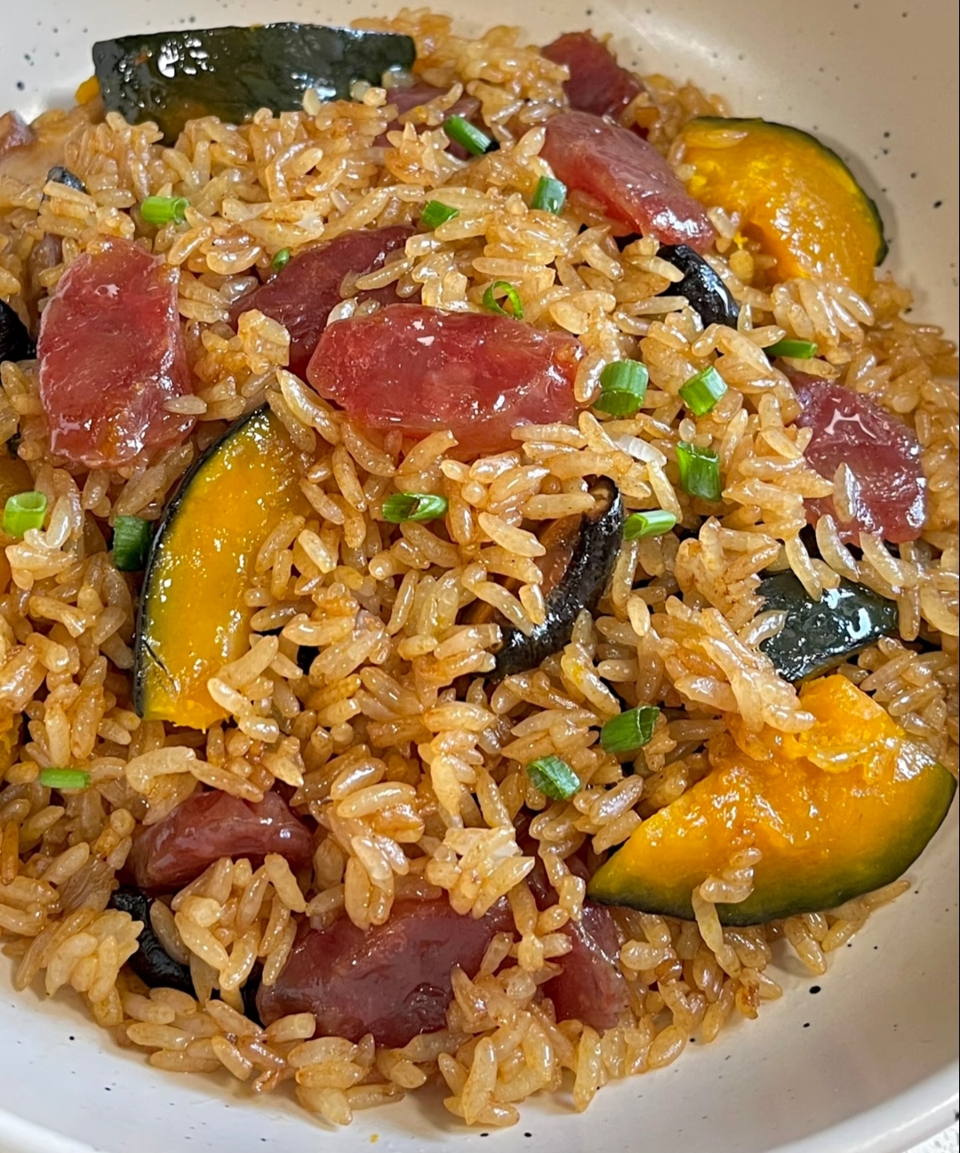 别犹豫了,今晚就试试这碗幸福感爆棚的腊肠南瓜焖饭吧!记得多焖一点,因为……根本不够吃!