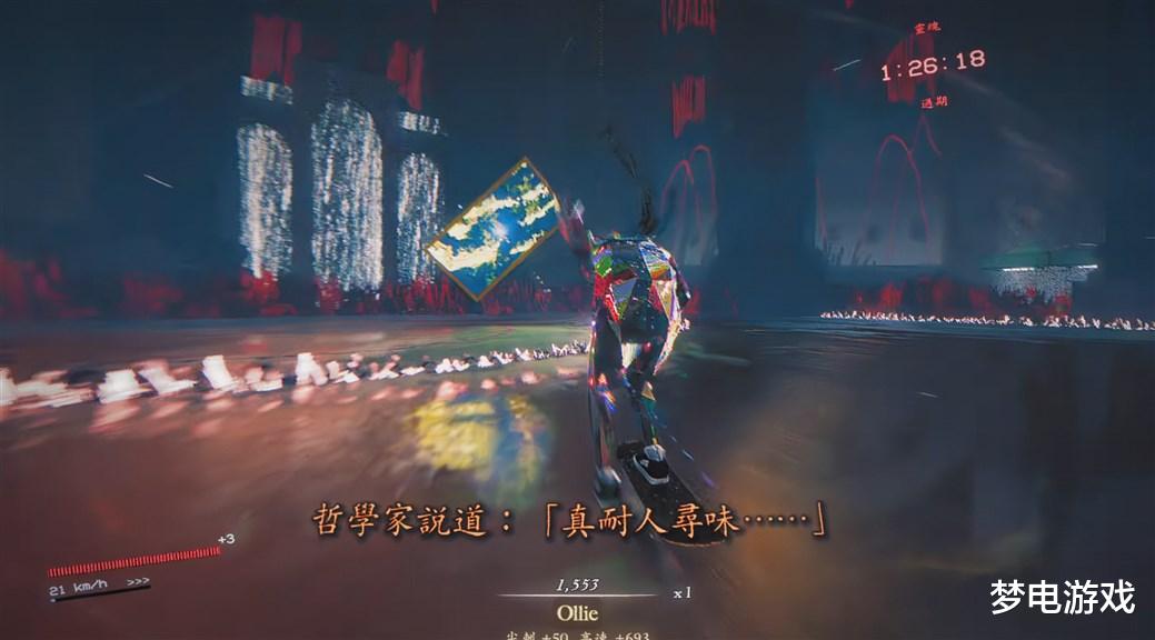 很难给这个游戏进行一个定义和总结,作为一个台词不多,精于滑板操作的,不折不扣的滑板动作游戏。这个游戏给我留下更多印象的,还是它诗化解读空间下,超现实主义折射出的“意志”。