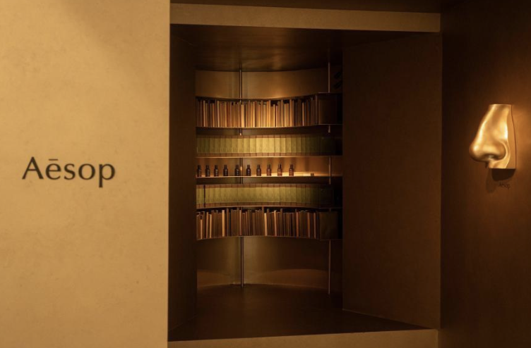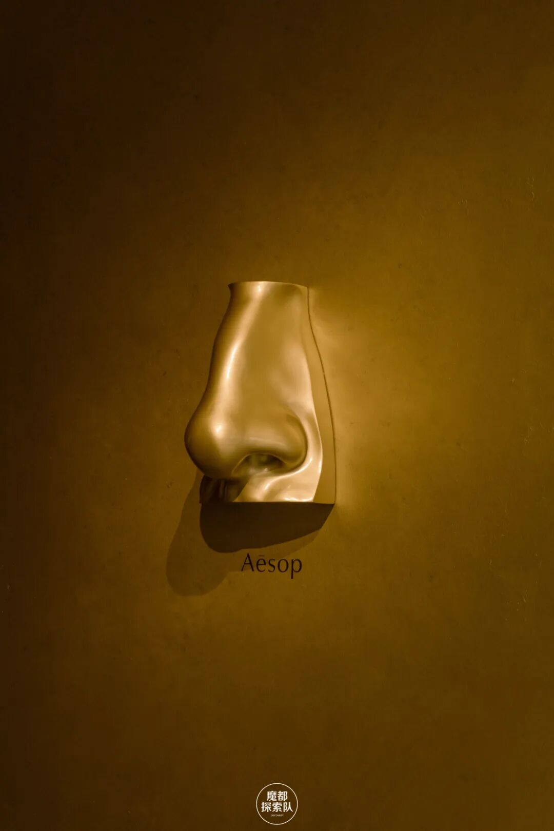 入口的标志性鼻子装置,是Aesop伊索通过嗅觉与外界建立联结的艺术表达。