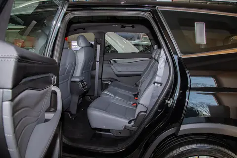 作为中期改款车型,新款豪越L在延续现款硬朗轮廓的基础上优化细节设计:直瀑式进气格栅调整了面积与细节,与大灯组衔接更显紧密,前包围两侧新增银色装饰件点缀;车身侧面与尾部造型基本沿用现款设计,贯穿式尾灯组与双边共双出排气装饰保留,同时新增20英寸多辐式轮辋可选。车身尺寸方面,新车长宽高为4865/1910/1770毫米,轴距维持2825毫米的同级优势,核心变化在于新增5座版本,连同6座、7座车型形成全场景布局,其中5座版后备厢基础容积达628升,实用性拉满。