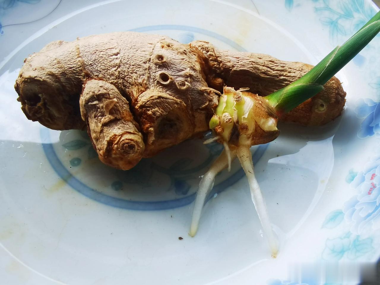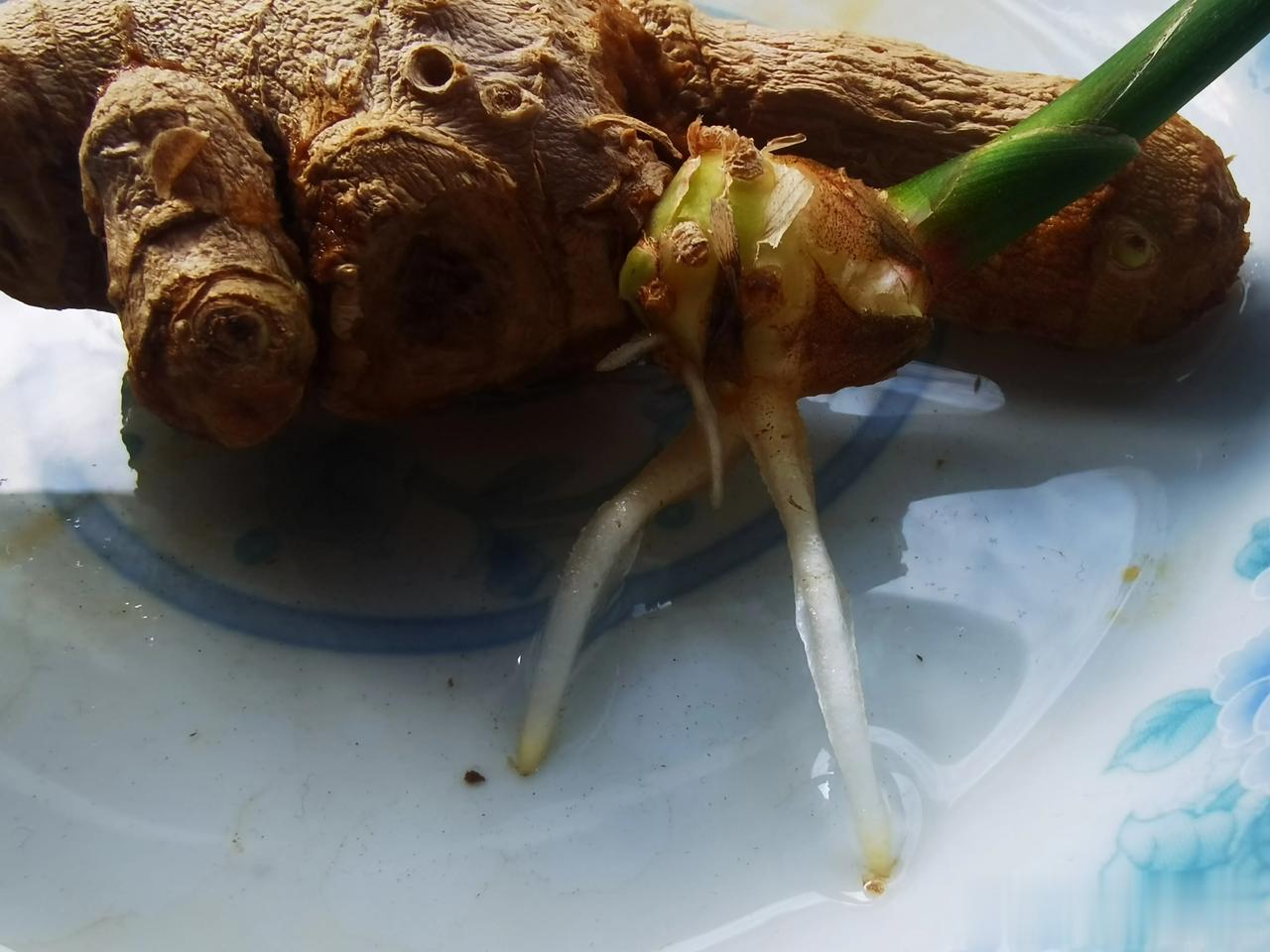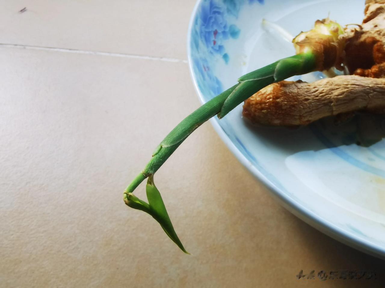 生姜放久了发芽,索性用水养起来。当做一盘另类盆景,也很有趣。