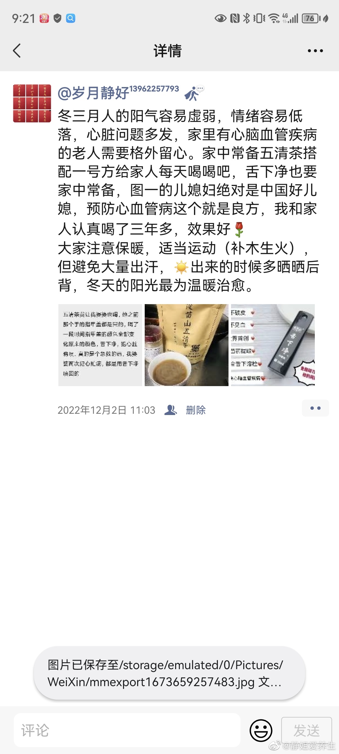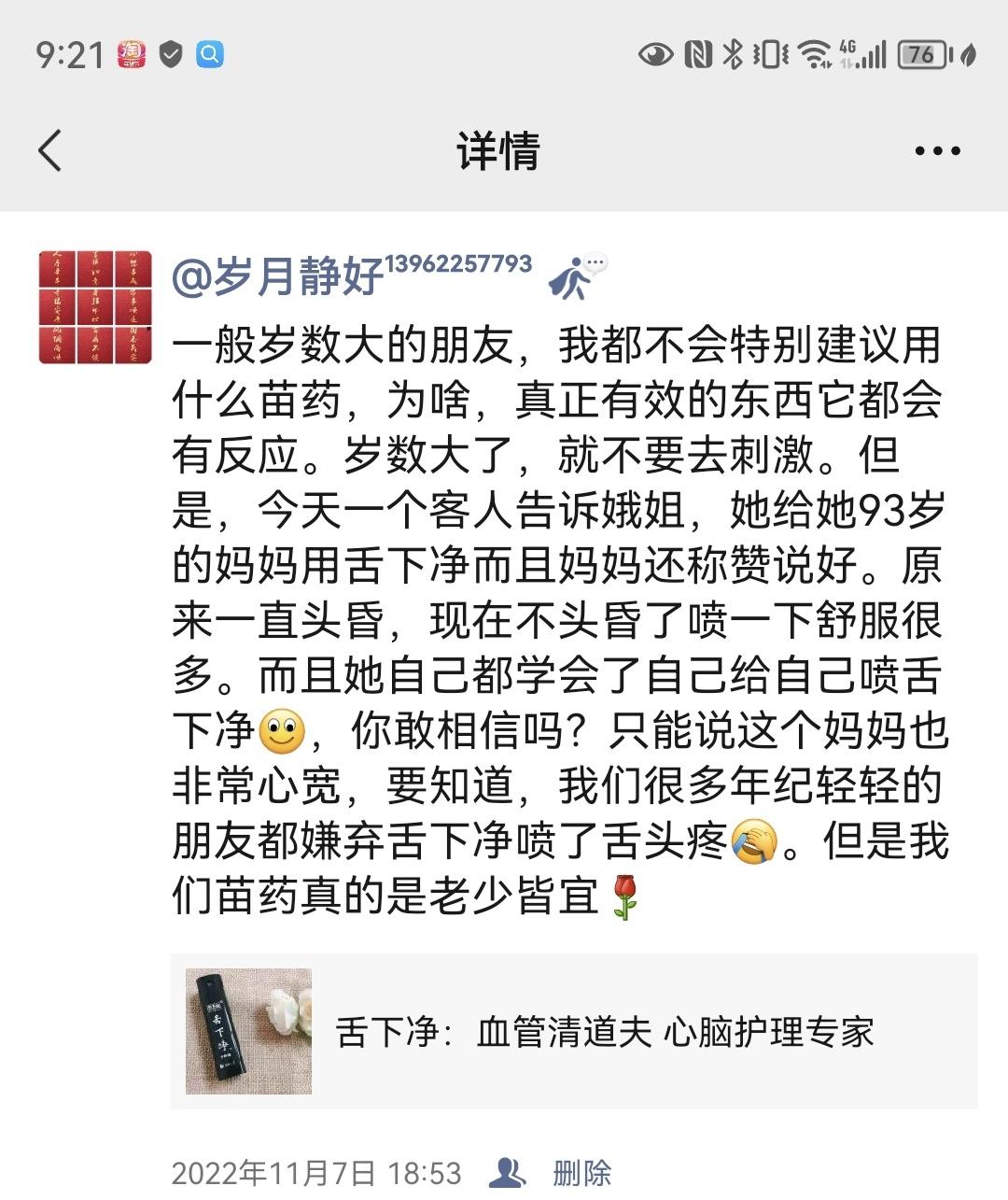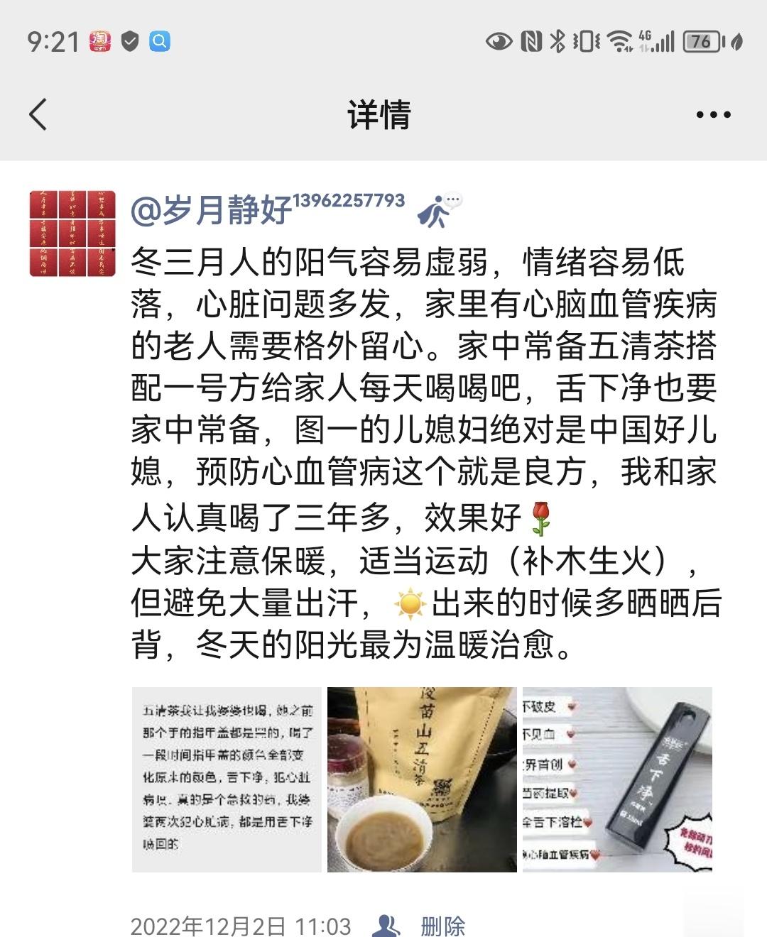 钟博士精心研制的五清茶,一号方,舌下净,坚持调理半年以上,曾经是淤血体质的我真心推荐给大家,我坚持调理了3年多,必须点赞她们的功效[好的]