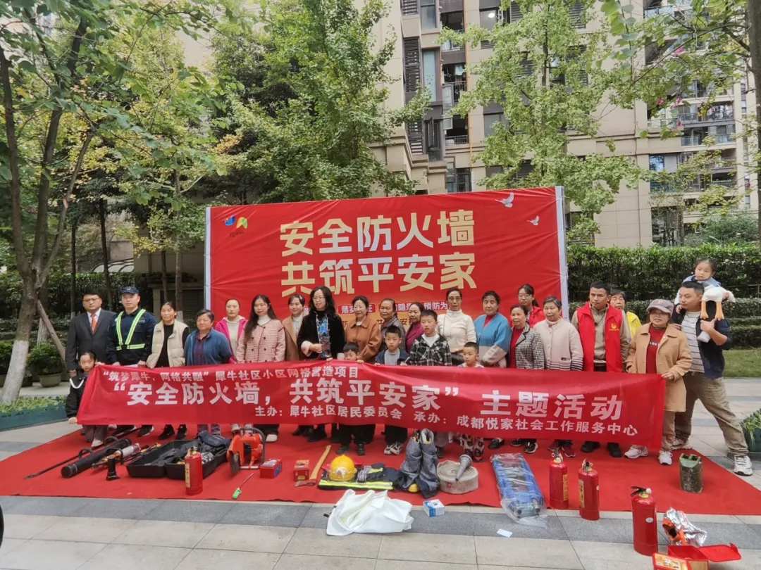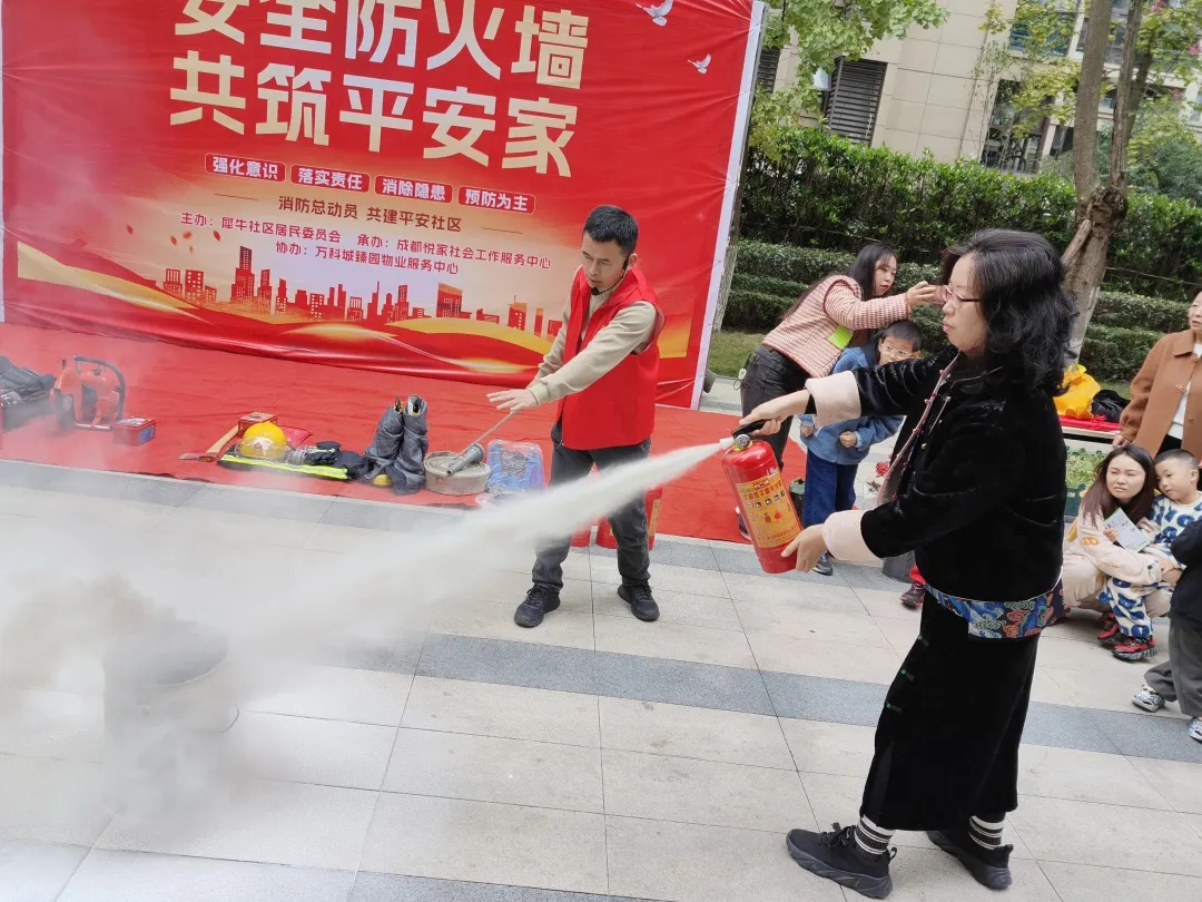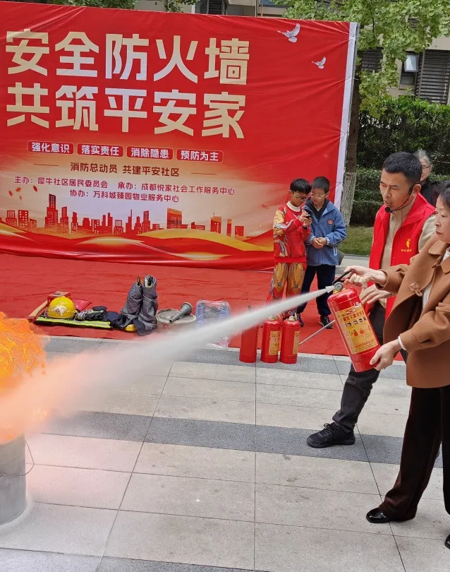 为进一步增强辖区居民的消防安全意识,提高居民在火灾初期的自救互救能力,犀牛社区携手成都悦家社会工作服务中心于11月16日在万科城臻园开展了“安全防火墙,共筑平安家”主题活动。本次活动旨在通过生动有趣的讲解、实际操作演练、趣味问答以及宣传资料的发放,让消防安全知识深入人心,共同营造一个安全、和谐的居住环境