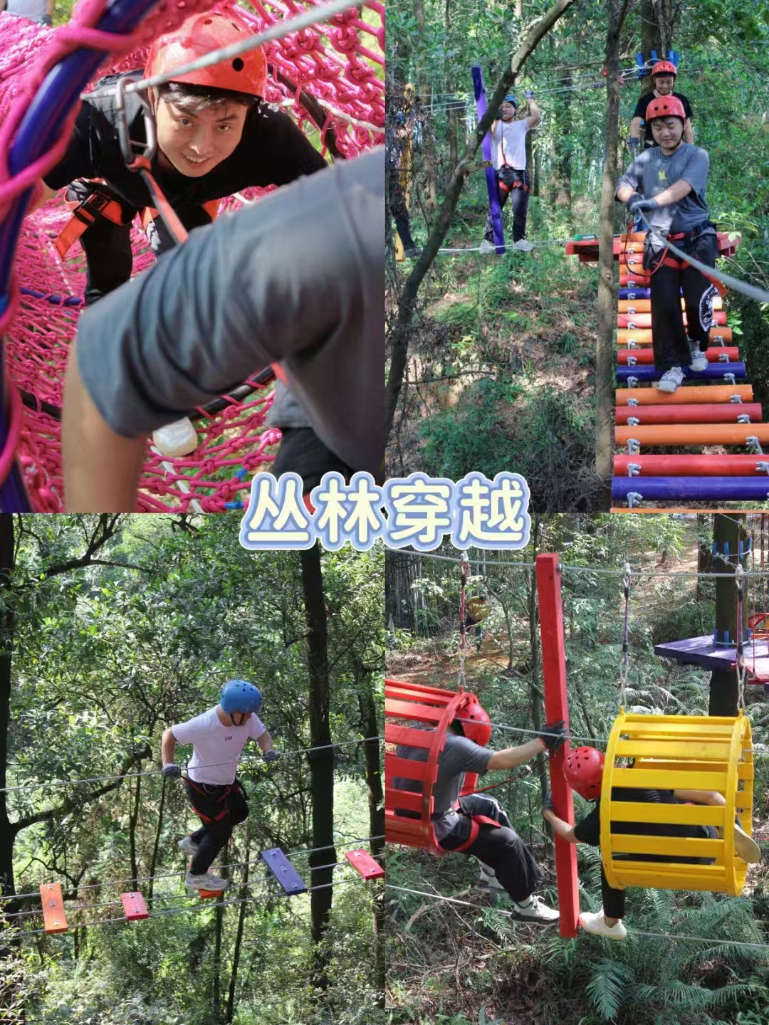 在林间高空走绳索、过网桥,每一步都在挑战心跳!