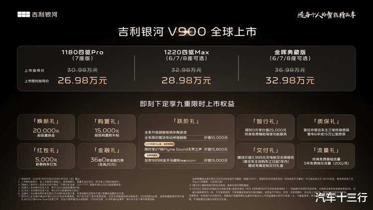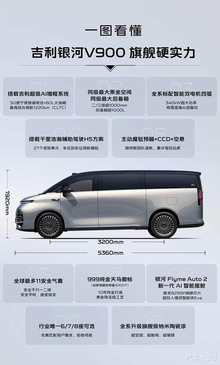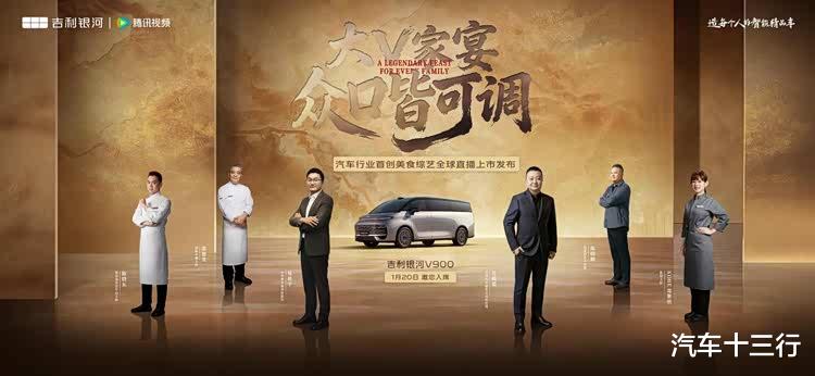 1月20日,定位为“AI全场景家庭旗舰MPV”的吉利银河V900正式上市,共推出3个车型,上市限时指导价26.98万元-32.98万元。与以往任何大场面式发布会不同,吉利银河V900联合腾讯视频热门IP《一饭封神》殿堂主厨进行共创,将家宴做菜与造车进行有机融合,综艺效果满满。为了让更多家庭消费者深度理解吉利银河V900的上市,汽车十三行以十问十答的形式,来阐述这款吉利银河V900。