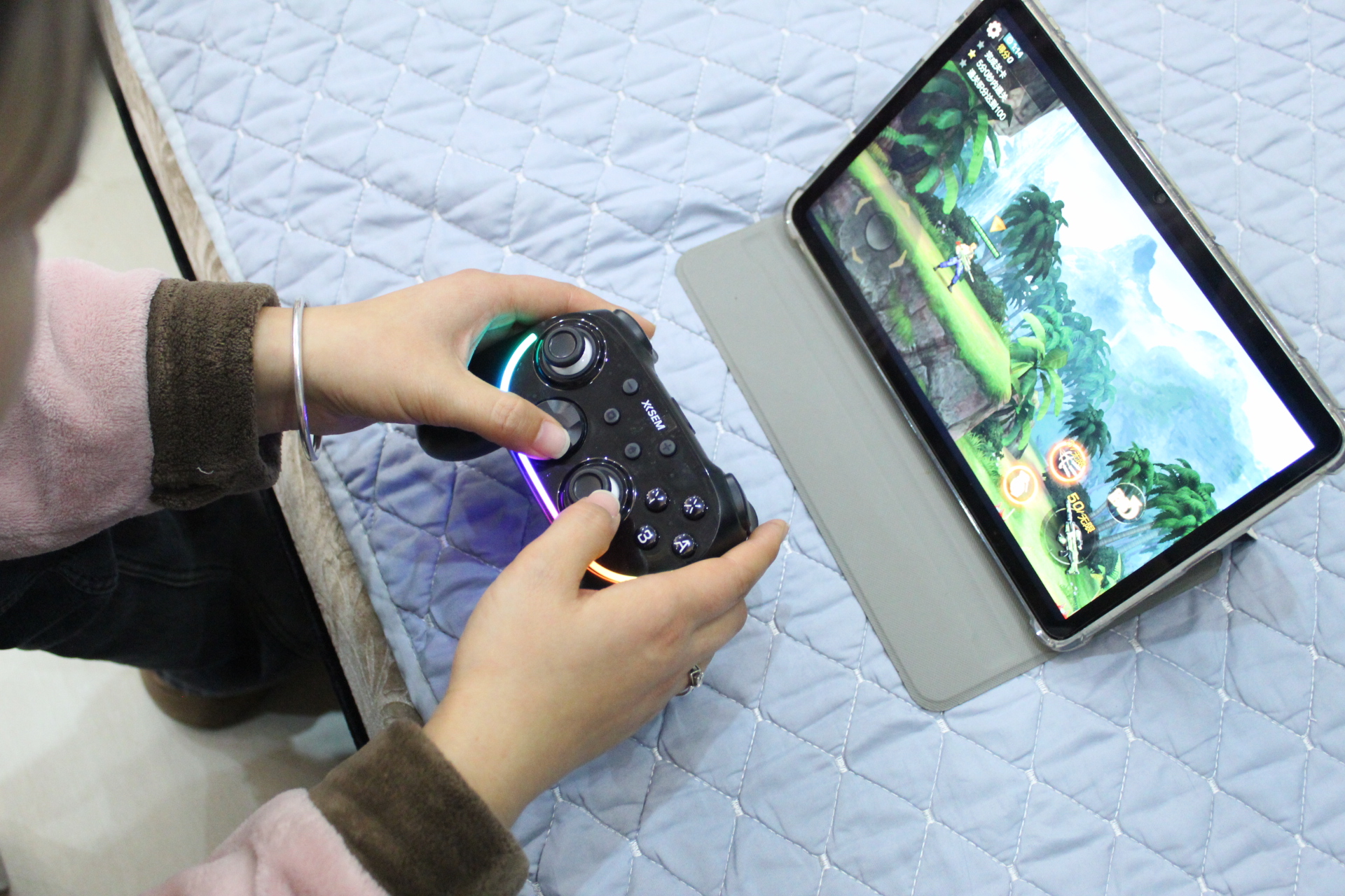 核心操控才是重头戏,彻底解决传统手柄的痛点!以前用Switch手柄最烦摇杆漂移,西圣GC1的ForceTune悬浮机甲摇杆绝了,磁悬浮霍尔支撑+全金属骨架,拨动起来丝滑无摩擦,0死区精准回中,玩《射击游戏》时高速微操、《赛车游戏》的稳定弧线切换自如,再也不用担心越玩越跑偏。搭配自研AccuX算法,毫秒级轨迹预测,操作响应快到离谱,0.5ms超低延迟,真正做到“手到哪,画面到哪”,跟朋友开黑再也没输过反应速度。