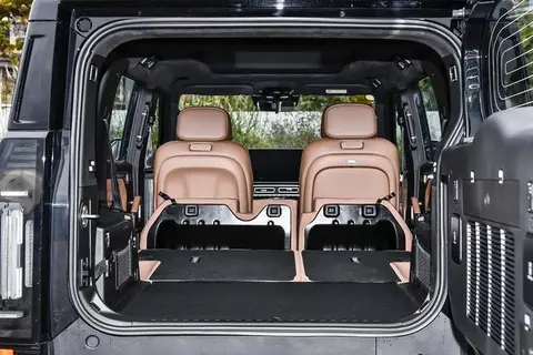 车身侧面的上下车踏板宽度进一步增加,既提升了上下车的便利性,又强化了硬派气质。28°的接近角、30°的离去角以及220mm的最 小离地间隙,赋予了车辆从容应对复杂路况的基础硬件条件,而700mm的最 大涉水深度,让雨季积水路面通行也无需绕道。车尾采用高亮黑饰板点缀的保险杠,与两侧尾灯形成呼应,电动吸合尾门作为全系标配,在兼顾实用性的同时提升了整车档次感。
