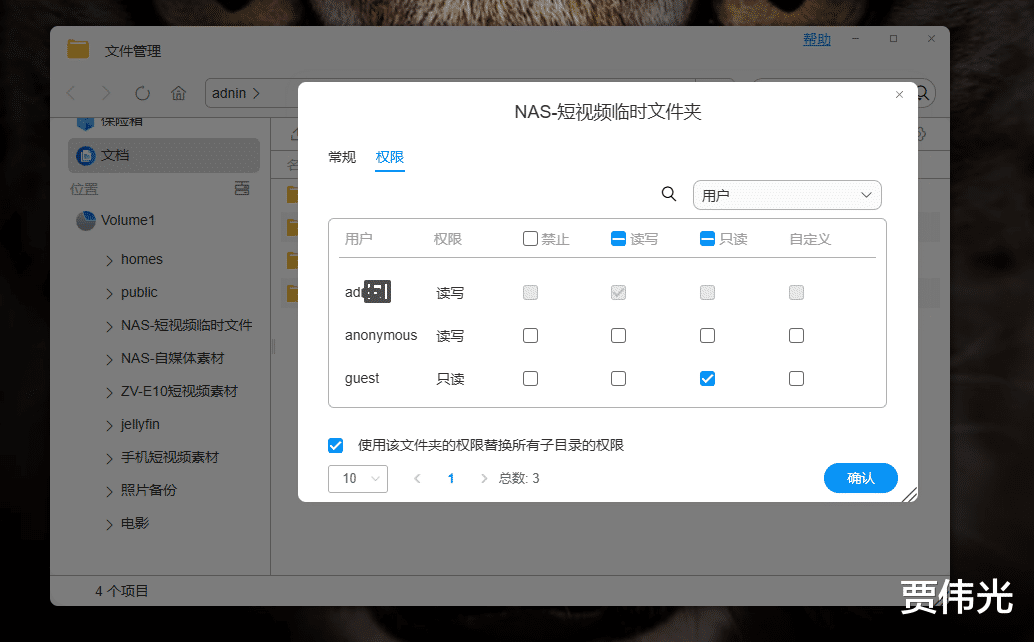 其实用了铁威马 F4-425 Plus,可以很好地避免这样无意义的重复工作。直接为客户建立一个单独的文件夹,设置单独的权限即可在每次修改完客户立马可以查看新版本。通过F4-425 Plus的13种权限管理,可以很好地区分开本地用户、客户和其他临时访问者,相信大家用习惯了windows的NTFS权限划分的话,对这个是很好上手的 。