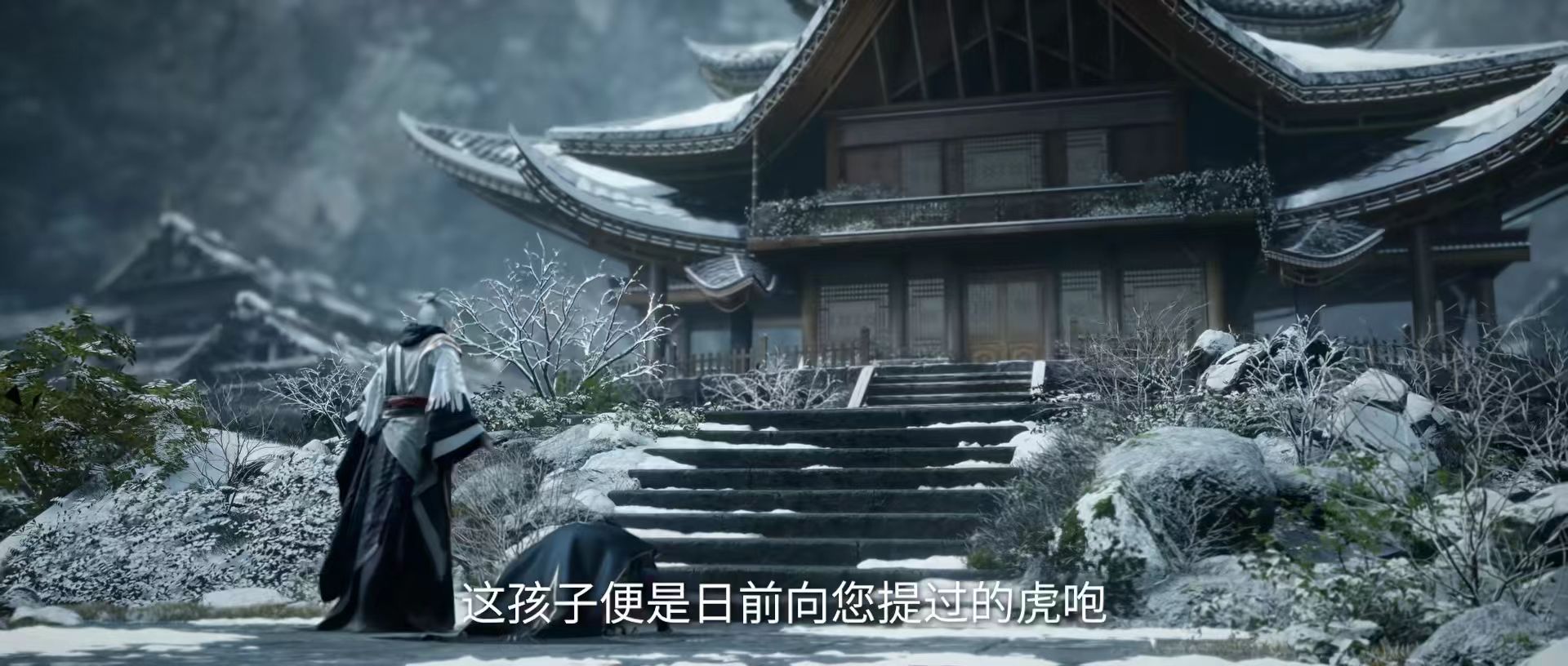 这个人是谁呢?便是虎咆。虎咆也终于是登场了。可以看到虎咆一头黑发,年约二十岁上下,还穿着一身黑衣,显得精明干练。在他的额头,还绑着一根红色的绸带,也真的引人注意。