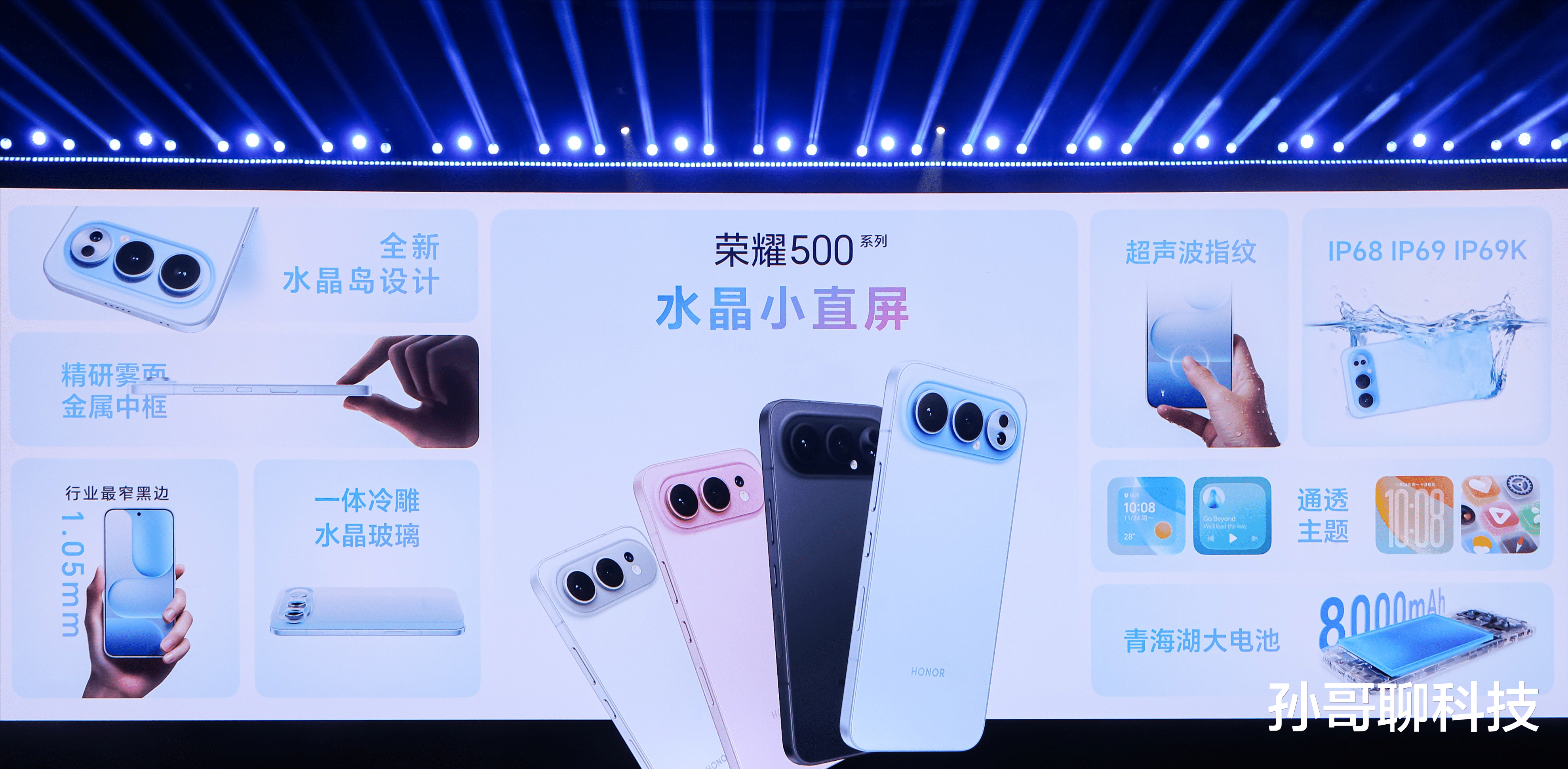 荣耀500全系支持IP68/69/69K满级防水,防护能力不用担心。其他配置包括荣耀500 Pro支持超声波指纹解锁、全系立体声双扬声器、线性马达、多功能NFC、红外遥控等,外围规格升级。
