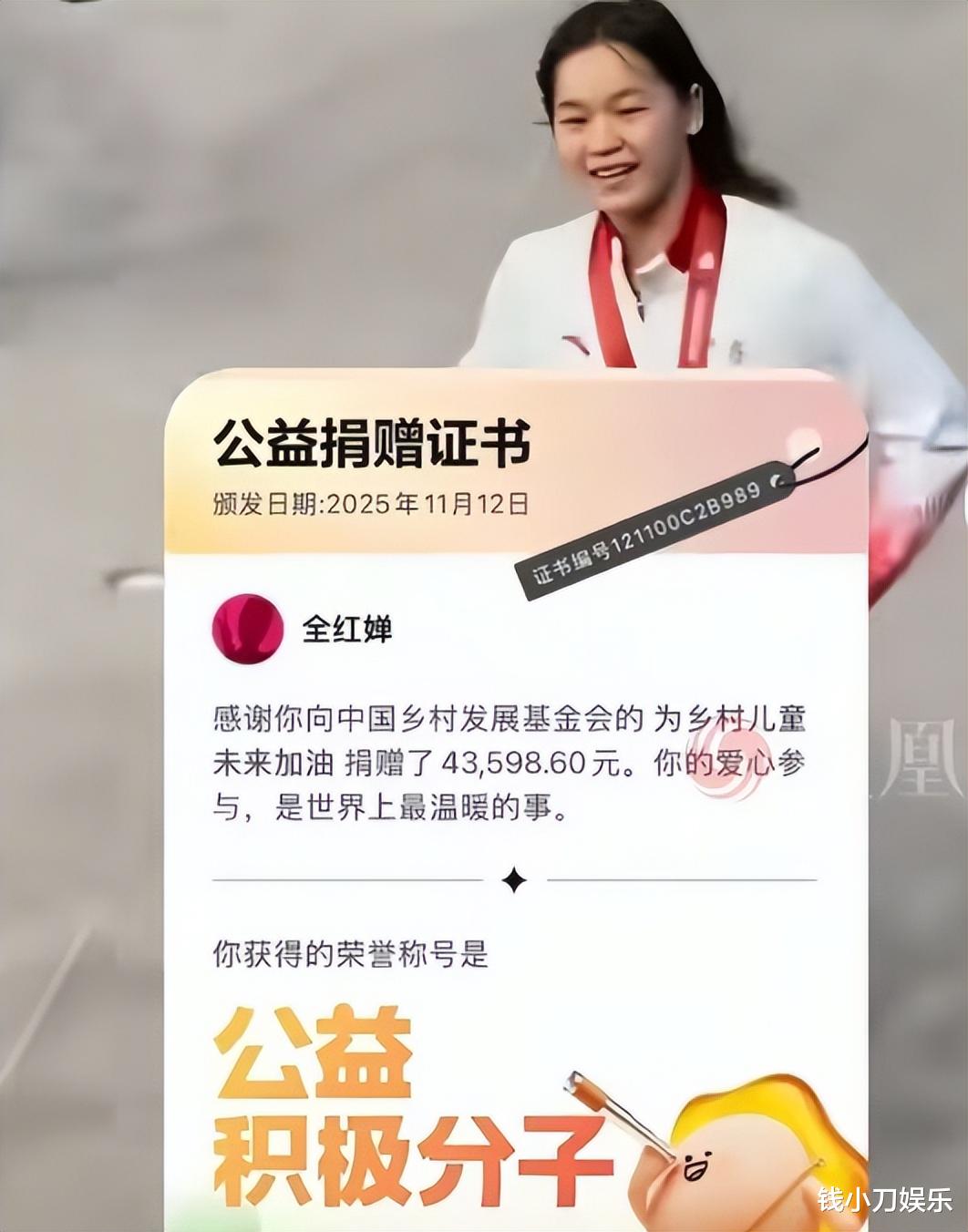 作为正能量的榜样,全红婵也选择将收到的打赏全部捐献给乡村儿童,并晒出了捐款证明。这个举动更是让网友们都对她竖起大拇指,不愧是全民偶像。