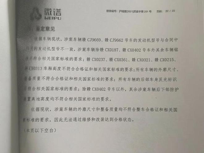 其中一家机构作出鉴定意见显示,依据现状,涉案车辆的外廓尺寸和整备质量均不符合整车合格证和相关国家标准的要求,因此无法通过维修和改装达到合格状态。
