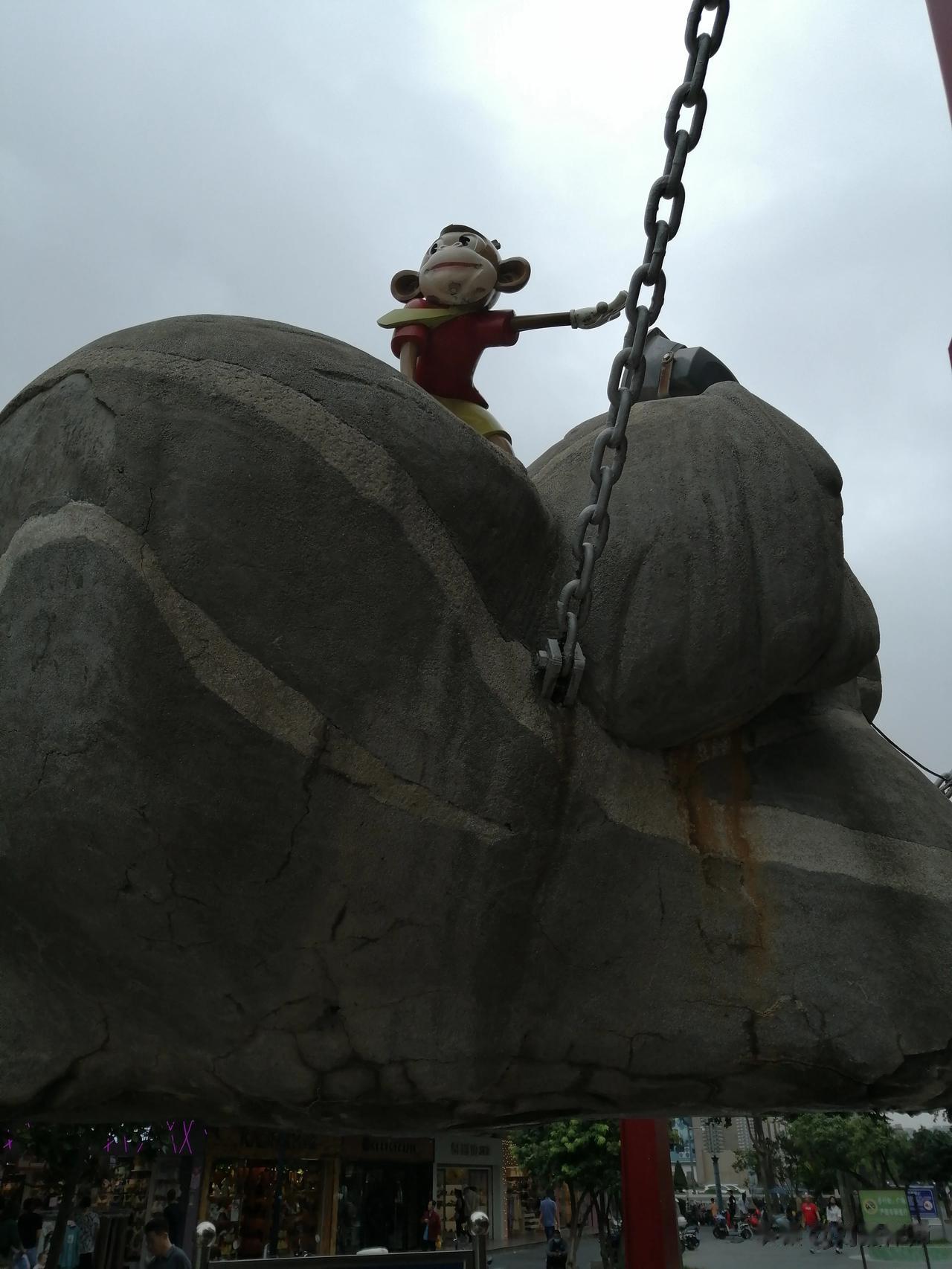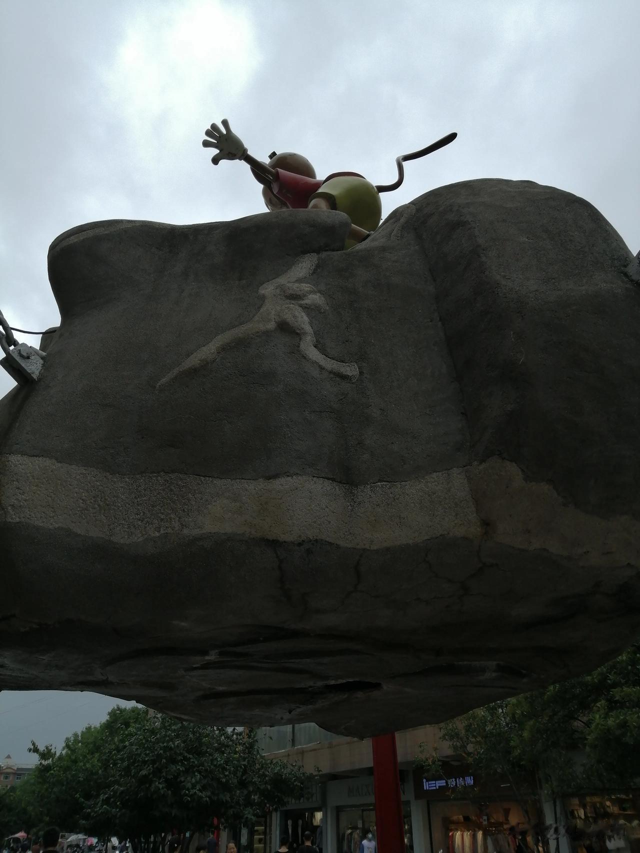 以前每次我从这儿走,我都担心这个石头掉下来会把人砸死。要知道这以前下面可是没有铁链子拦的。。。以前看小朋友在底下玩,总是感觉不安全。。