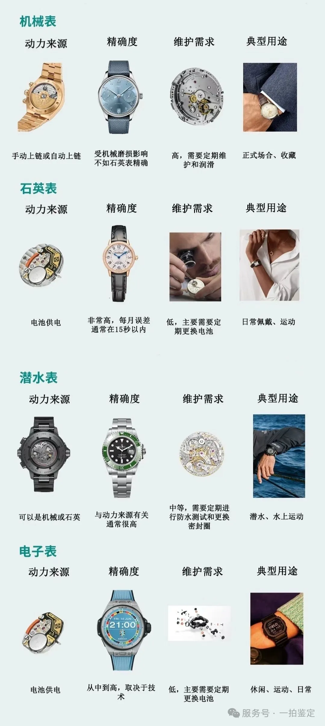 不同种类的手表承载着不同的功能与风格,今天我们就来一起盘点四大经典手表类型——机械表、石英表、潜水表、电子表。