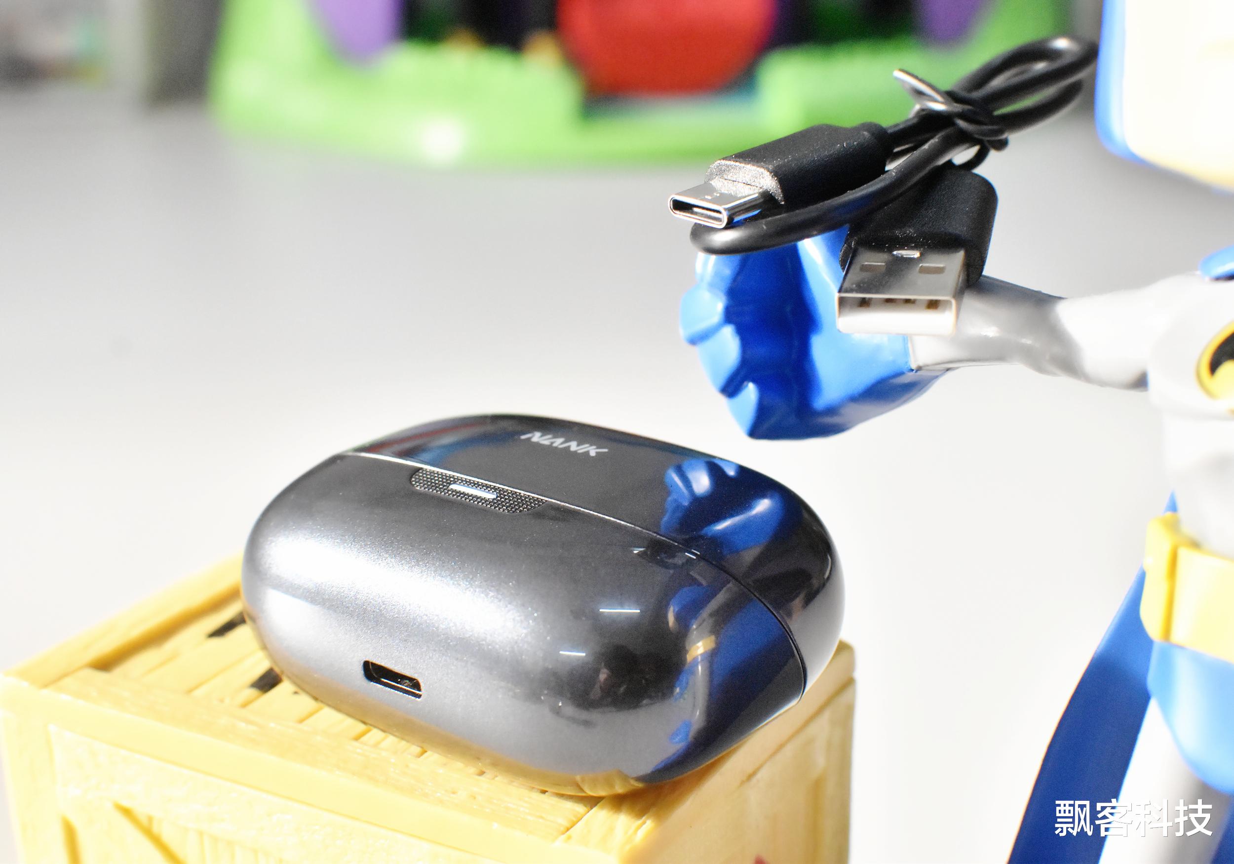 耳机内置电池容量为50mAh,满电可连续听歌8小时,搭配充电盒后总续航为30小时。充电盒底部是Type-C充电口,通用性强,现在基本上都比较兼容,和手机充电线共用,出门不用多带一根线。