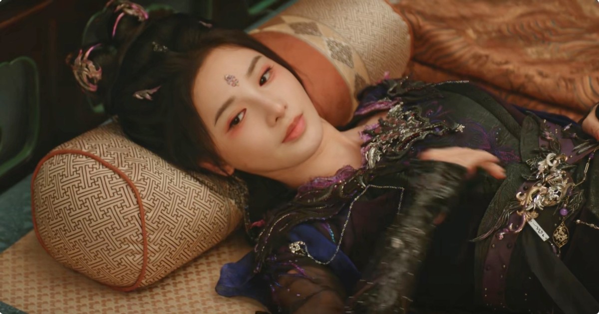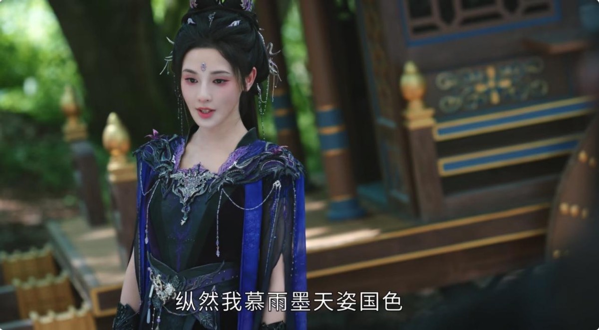 紫、黑、金的色调主导整部剧,慕雨墨的造型兼具异域感与危险气息。