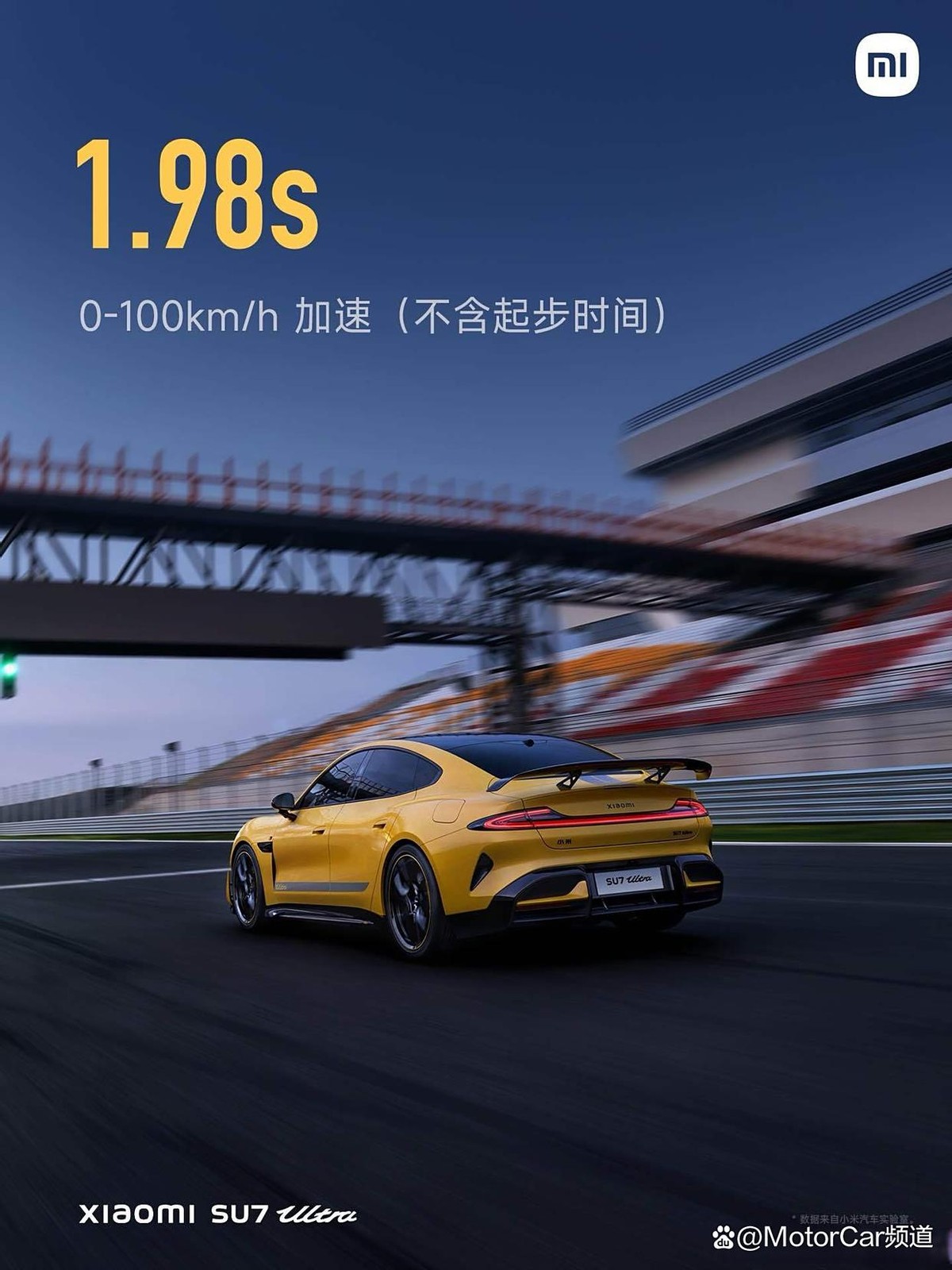小米汽车历来以加速度为营销着力点,比如其在宣传百公里加速度的时候,就是“百公里加速1.98 S(不含起步时间)”。
