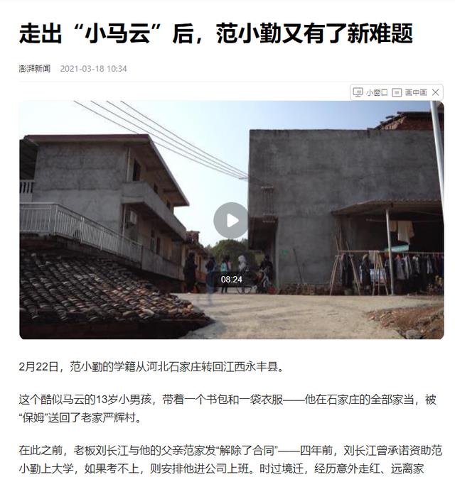 2015年,因为长相酷似马云的江西男孩意外爆红。范小勤一夜之间就从一个农村娃变成了“小马云”。