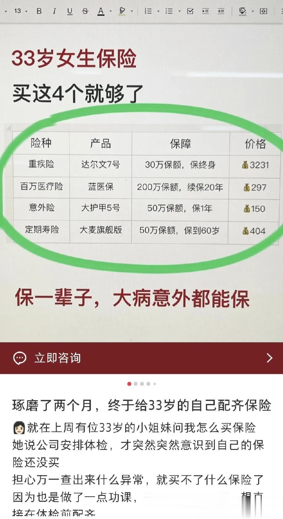 关于保险我最有发言权,当时我开了实体店,两家店,我姐在保险公司,她来求了我两次,保险公司需要拉人头,她一把鼻涕一把泪,我就心软了,早上八点多过去打卡,然后洗脑,十点半就可以走了,要回去看店,我姐说差一个人当主管还是经理,第一天第2天上课洗脑,第三天开始叫我们买保险,我不买,后来还是被我姐洗脑,买了2552一年交20年,还有分红险六千一年交十年,那时候我姐说对接三百万医疗,每年三百,我姐说每年都是三百,可是到了第二年涨价,三个月后我就不在那里了,去保险公司了解,跟我姐说的完全不一样,后来交了第二年我想退,我姐又叫我交,后来我交了,第三年退了4800分红险,你们想下,作为我姐,他都这样误导我,你们觉得朋友亲戚跟你们说的会是真的吗?因为我看了合同,发现很多东西都不一样,都没有,果断退掉,所以分红险真的是没用的,有业务员会拿车险跟这个相提并论,这个是没法比的,车险是必须要买的,反正我在也不会买这些垃圾保险