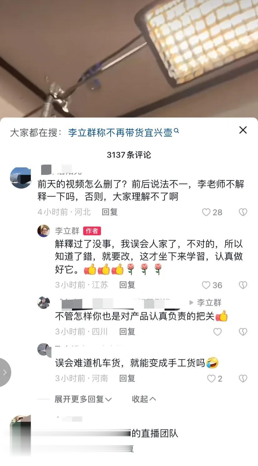 李立群:对不起,他们给的实在太多了,打脸就打脸吧! 从来没见过打脸来的这么快的,7月7日凌晨,老戏骨李立群才发视频称不会带货宜兴紫砂壶,因为他觉得里面的水太深了,什么手工壶半手工壶机车壶根本分不清,品控不好把握。 结果今天晚上,李立群直播间的背景就是一展柜的紫砂壶,购物车也上了壶的链接! 不少人对李立群的操守表示了怀疑,很多人要取关他。 也有人调侃他是不是因为自己的发言受到威胁了,对此,李立群回应,他是被专家科普了一下午,所以有了改观,又觉得卖壶是可行的了。 李立群是7月5号到的宜兴,当时爱分享的他还向网友展示了他住的旅馆都有紫砂壶的陈设,并且来到一紫砂壶制作工厂,观看了艺人现场手工制作紫砂壶。 可以看得出,那时他的兴致还是很高的,对紫砂壶的制作也很新奇,称赞不已。 至于为什么两天之后的7月7日凌晨,李立群为什么会发那个不会带货宜兴紫砂壶的视频,那两天中间发生了什么,就不得而知了。 不过7月7日晚上,他又表示虽然活到老学到老是好事,但也会让人犯错误,自己年纪大了,对紫砂壶的认知还停留在以前,经过几个朋友的科普,他才豁然开朗,会怀着高兴的心情去直播卖紫砂壶。 并且,那条不会带货宜兴壶的视频也删除了。 老爷子的这种转变,真是看的人瞠目结舌,感觉被遛了几圈,很是不爽。 其实李立群一直以来给人感觉都挺真实不做作的,只是这次带货风波,让人对他的印象大打折扣。 最近刚刚看完李立群主演的《洪武大案》,蛮被他的演技折服的,而且,更令人敬佩的是,他用的是原音,台词铿锵有力,作为一个演员,李立群绝对是合格的。 希望老爷子能记住演员才是自己的主业,守住艺德,不要晚节不保吧!