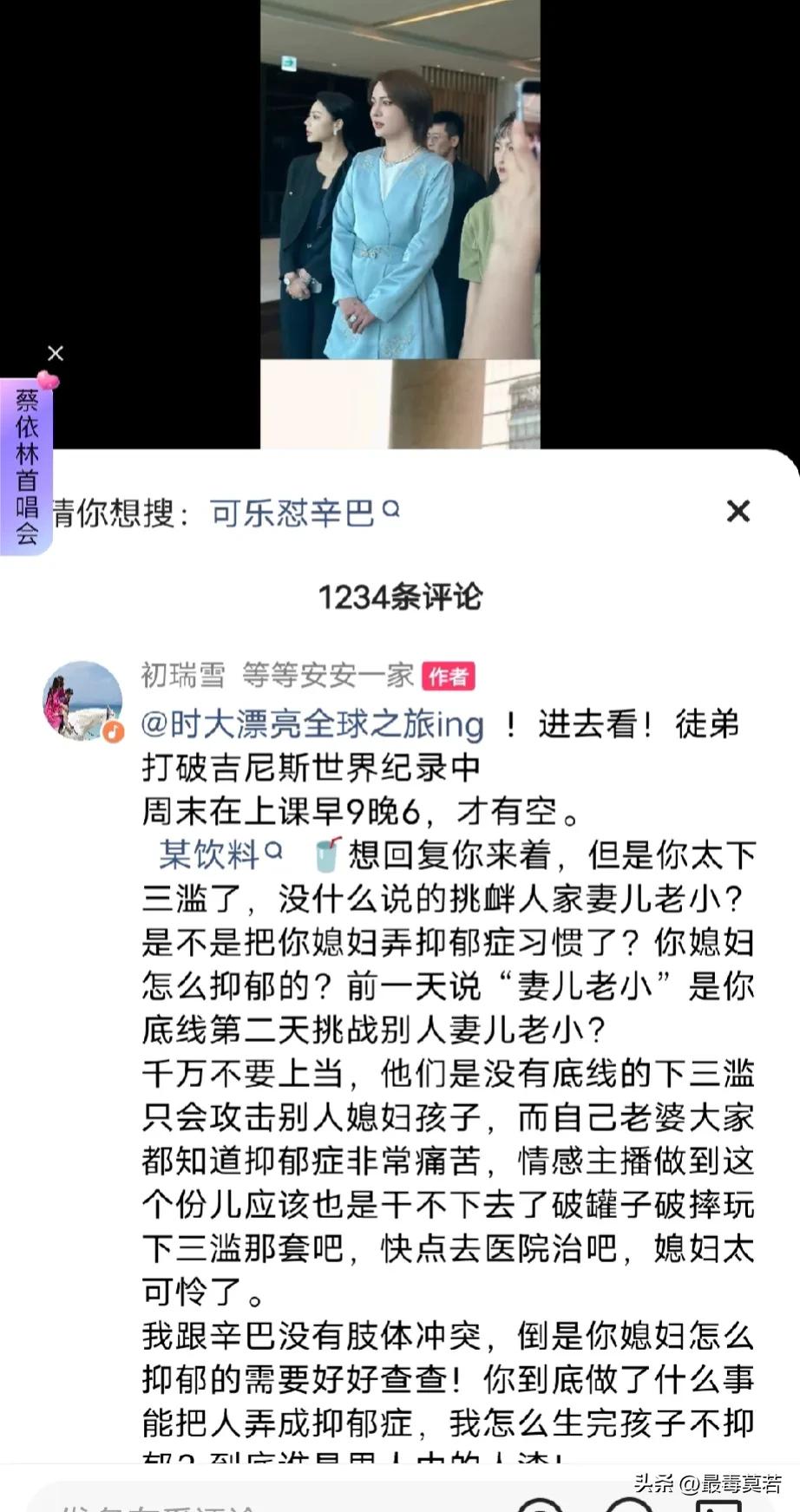 雪大替夫出征,回应四川可乐关于辛巴是人渣家暴自己,强调我跟辛巴没有肢体冲突,倒是你媳妇怎么抑郁的需要好好查查! 你到底做了什么事能把人弄成抑郁症,我怎么生完孩子不抑郁?到底谁是男人中的人渣! 挑衅别人妻儿老小的男人是最小人的!说你呢!你段位太低了,我骂你是因为不想他脏了手!