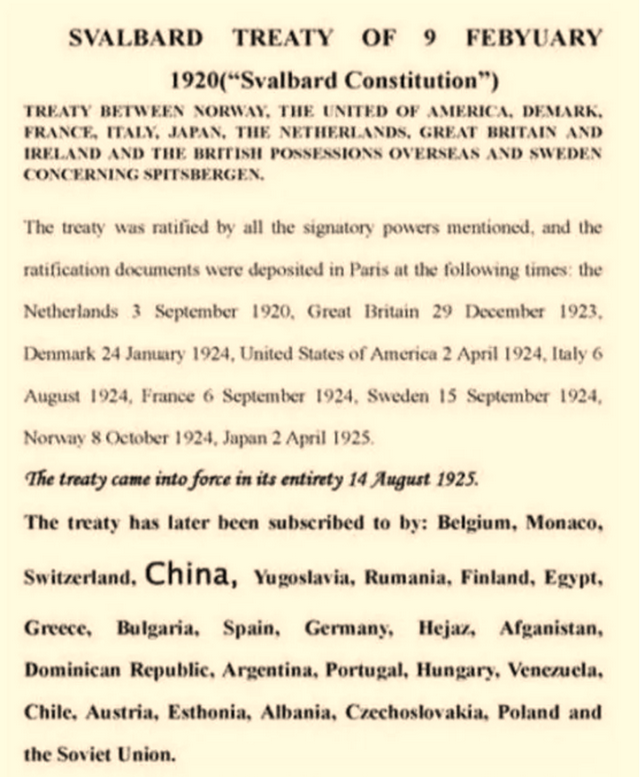 也许正因如此,为后来中国加入《斯匹次卑尔根群岛条约》埋下了伏笔。