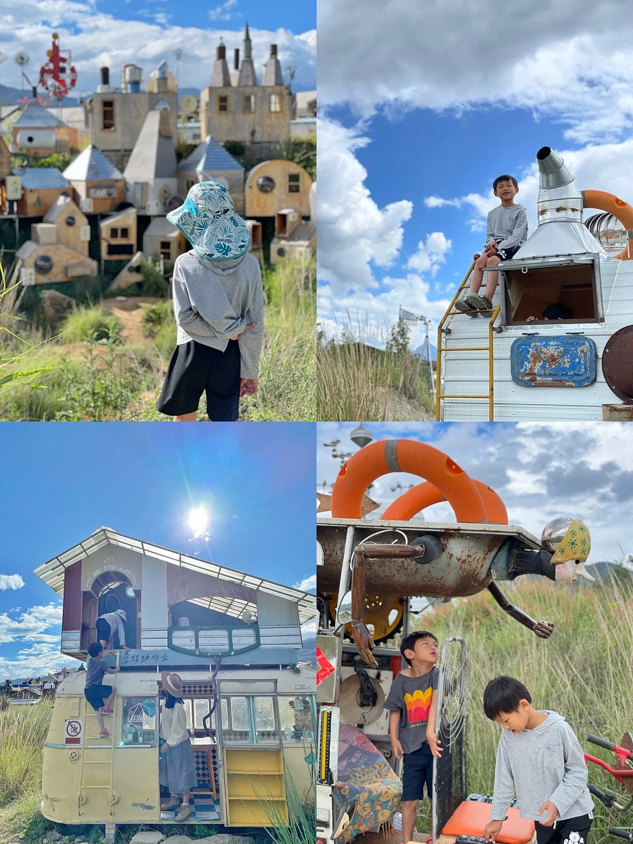 现实版“哈尔的移动城堡”,这里有一个个用各种“破铜烂铁”组装起来的奇奇怪怪又可可爱爱的小房子,每一个都可以钻进去摆弄一番,很荒野很奇妙。