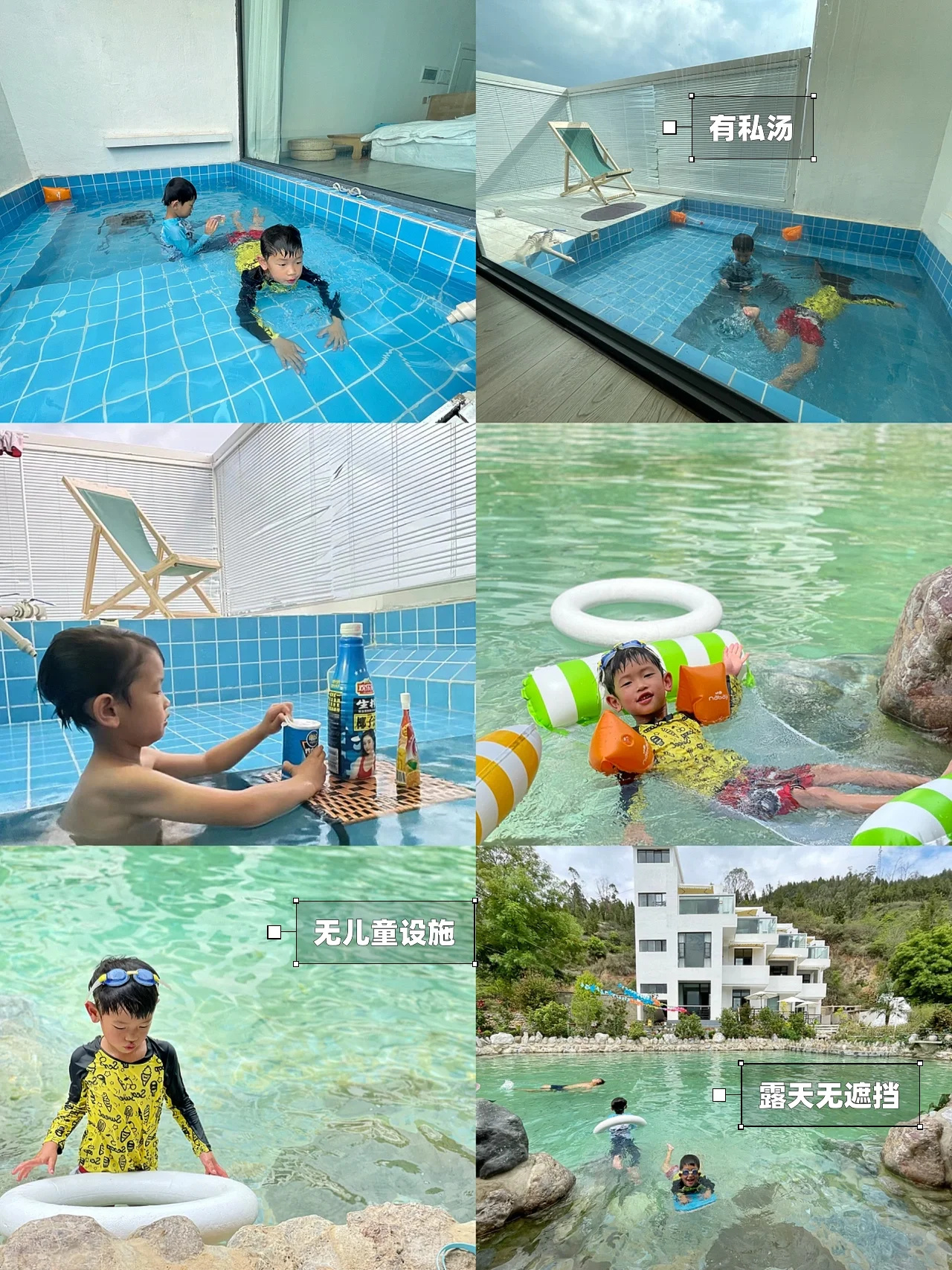 1.仙泉湾温泉酒店:有一个带棚大泳池和露天小泡池若干,儿童池的水上设施非常不错。重点是水质无比丝滑,像面膜水一般,被惊艳到了!