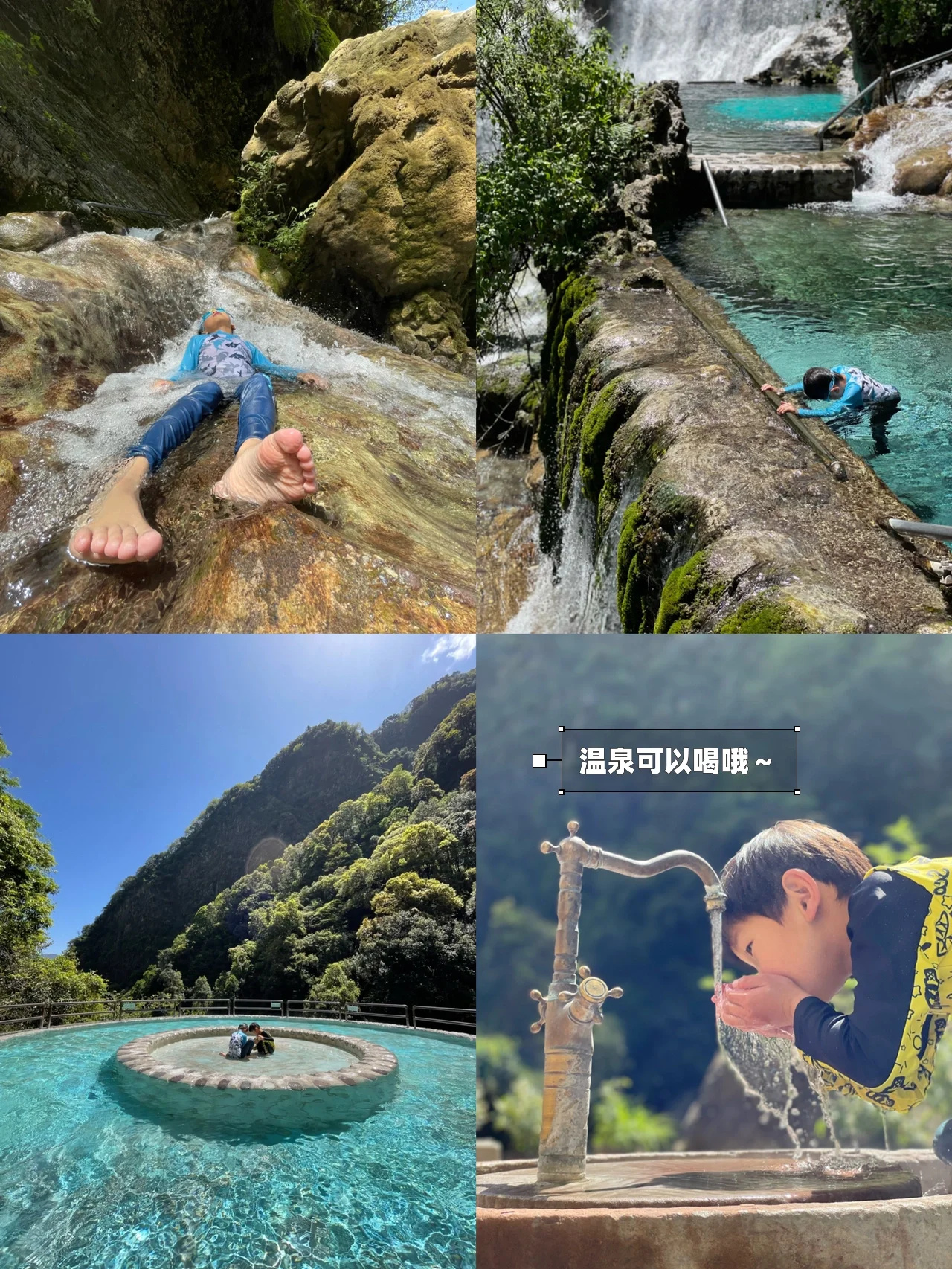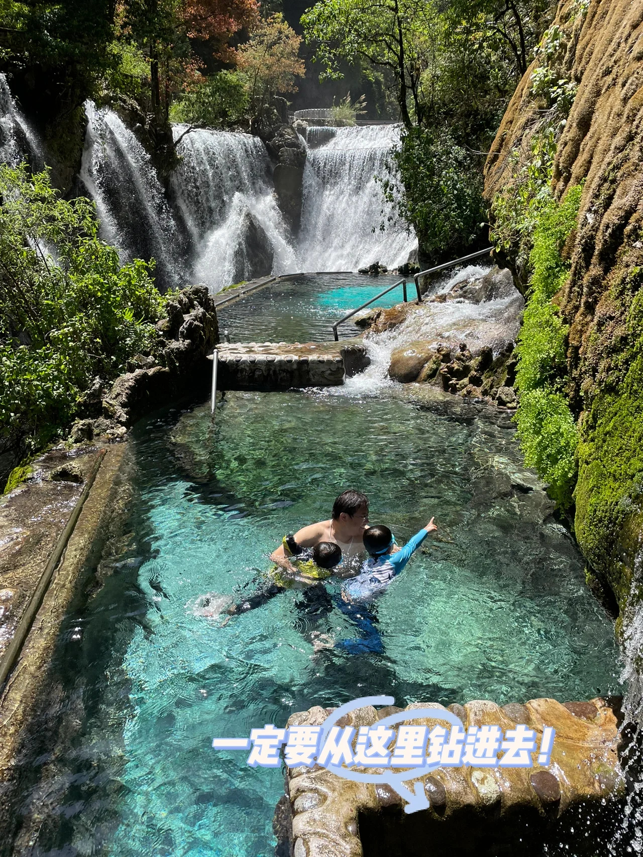 ♨️景区非常大,一进去就是标志性的瀑布温泉,最好玩的一块就是这里了,可以沿瀑布逆流而上去挑战,也可钻进山洞里去探险。