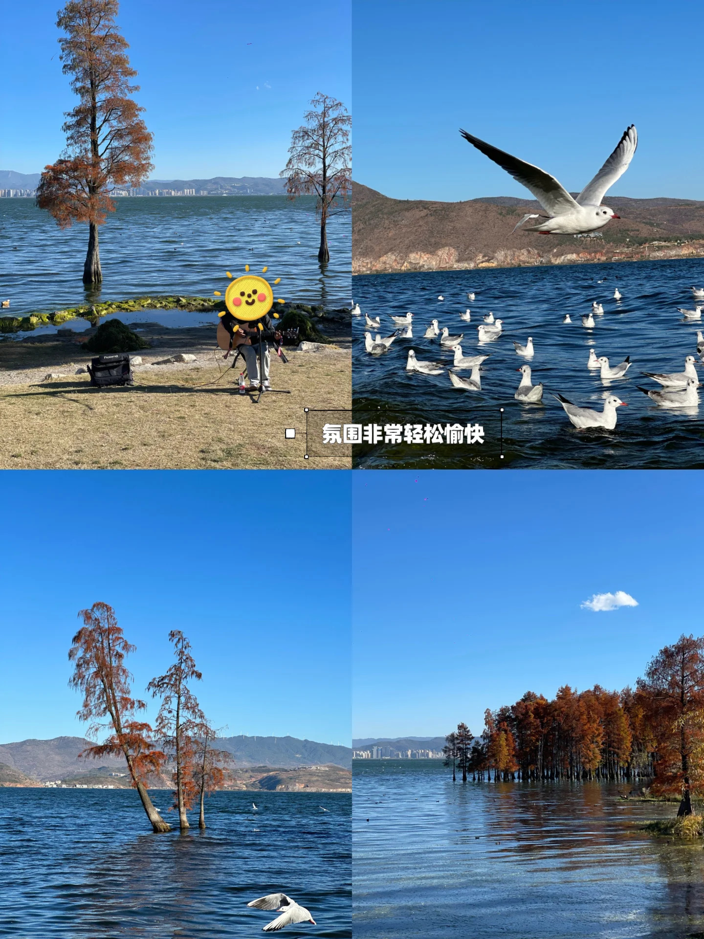 最不能错过的就是龙龛码头了,洁白的西伯利亚海鸥在火红的水中杉树边飞翔,映着大理瓦蓝瓦蓝的天空,伴着街头艺人轻快的弹唱。