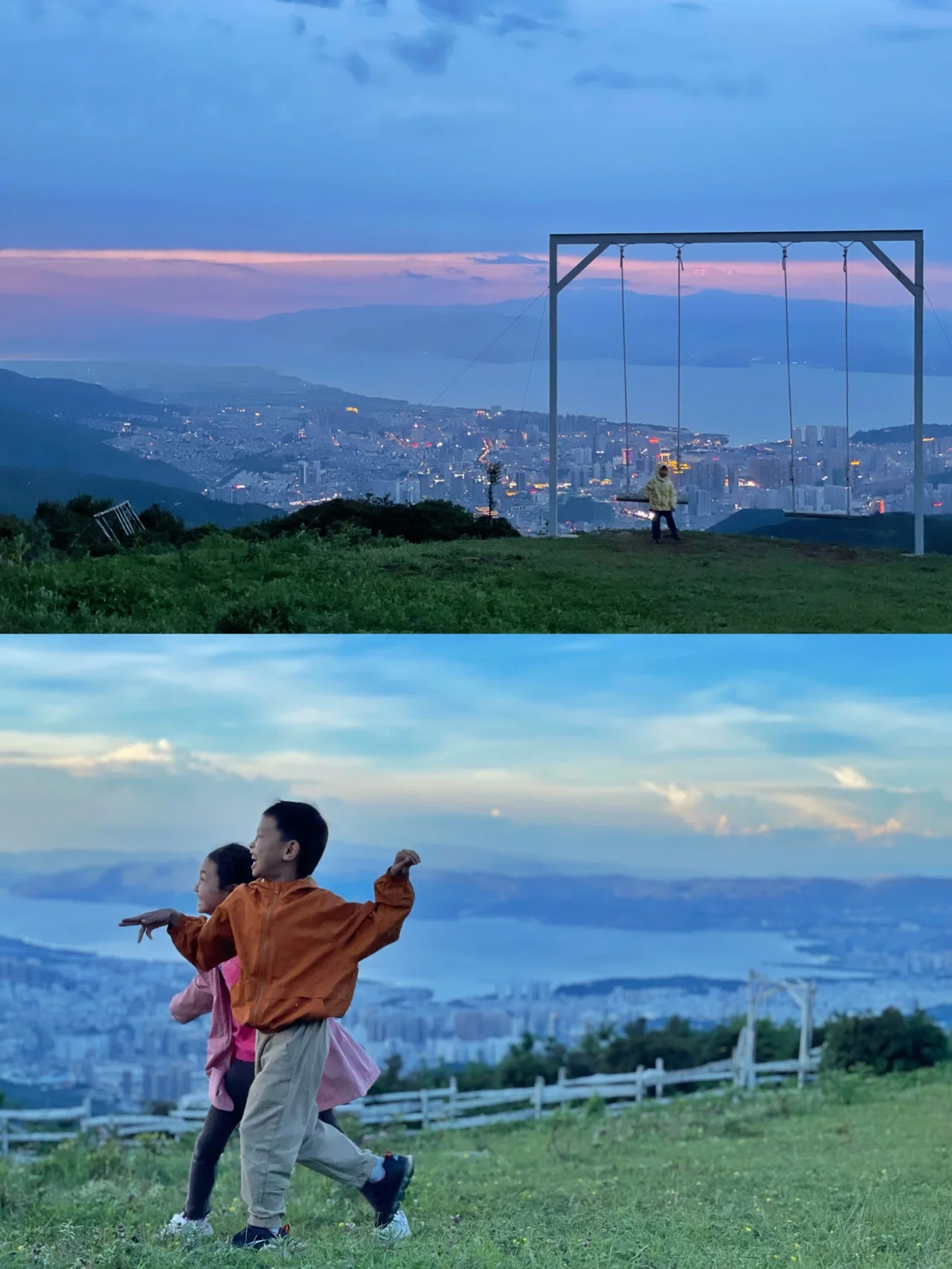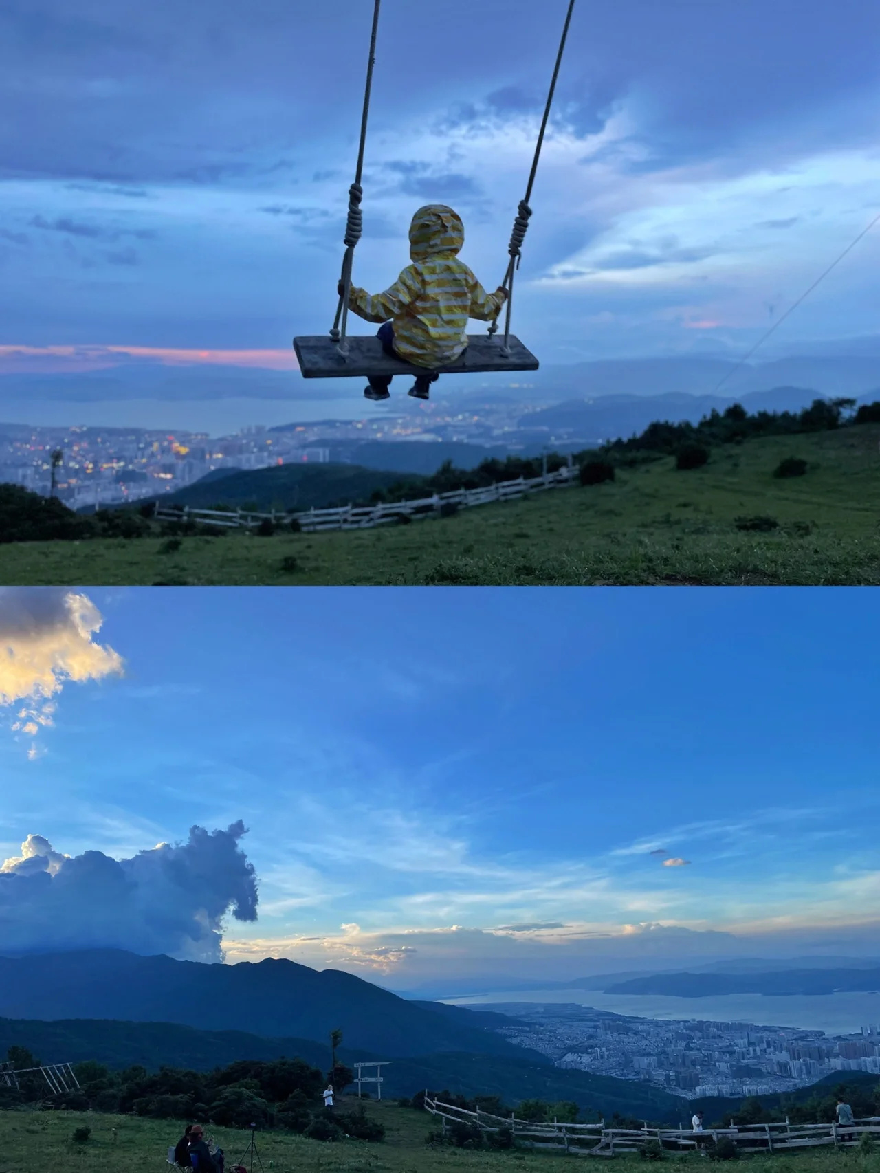 2.山上有2处带秋千的观景台,两处风景类似,但后面一个也就是我们去的这个会更大一点,人也会少一点。