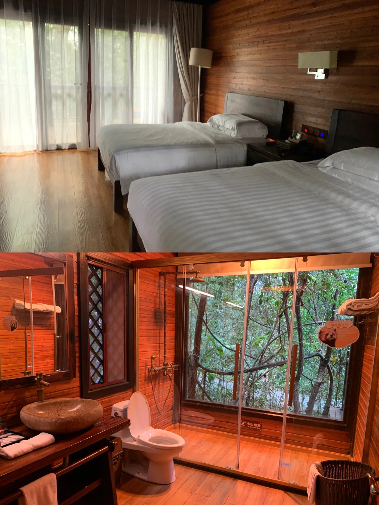 小熊猫庄园是普洱国家公园犀牛坪景区内唯一酒店,一期森林木屋房价便宜,二期现代化五星酒店房价贵,而我们刚好更偏爱森系木屋。