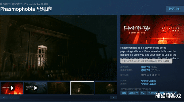 这可能是你玩过最“另类”的一款恐怖游戏了,作为由英国Kinetic Games开发并发行的四人合作恐怖游戏,《恐鬼症》无疑是恐怖游戏中的一个异类。
