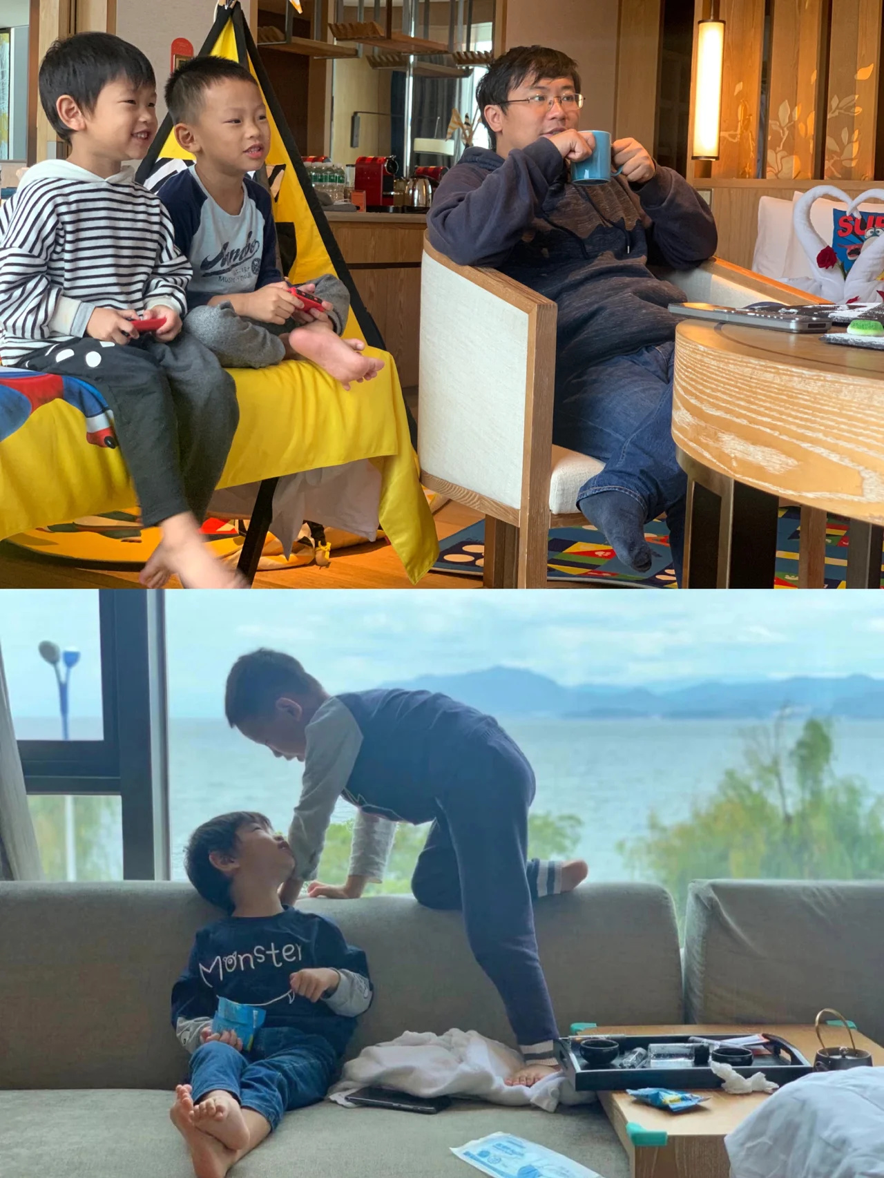我为占着这么好的房间却没能看到迷人的洱海蓝而有点可惜,可爸爸和孩子们倒是毫无所谓。