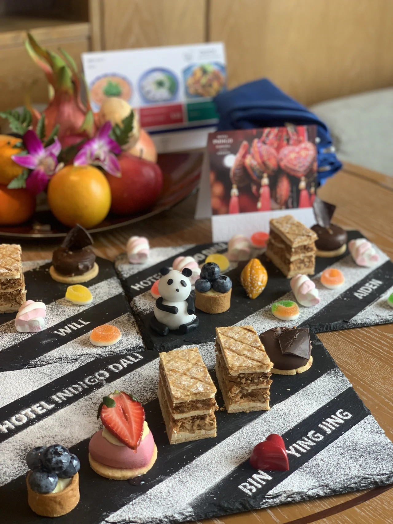 一进到房间就被英迪格的热情给惊喜到了,喷有我们名字的甜品、总经理亲手写在窗玻璃上的欢迎语,在这阴雨绵绵的天气里,让人倍感温暖。