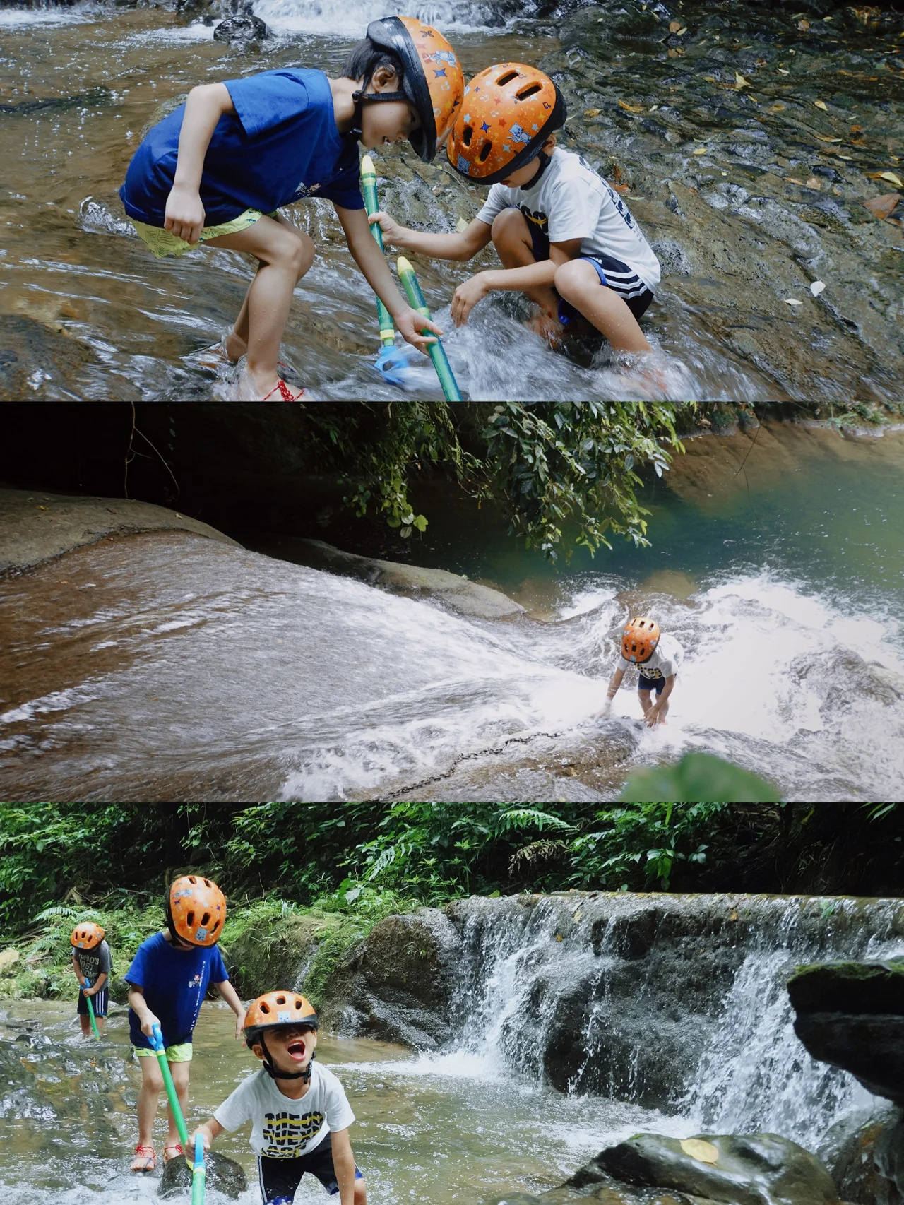 瀑布共6级,其中第一级和最后一级要年满14岁并达1.5米才可攀爬,其他部分小童也ok。