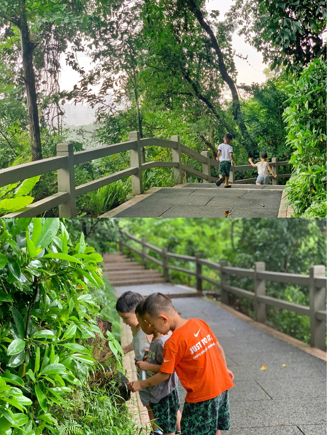 需要步行的地方全部都是下坡路,而且基本都有树荫遮阳,适合小朋友体力。山上肯德基、麦当劳、真功夫都有,不愁吃。