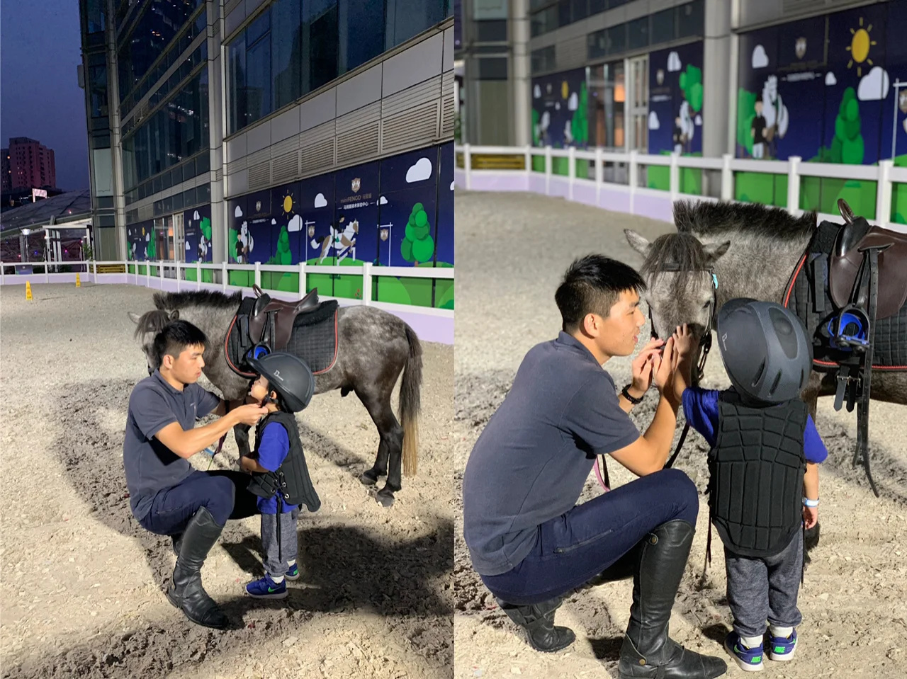 会让小朋友摸摸小马打招呼、拍拍小马说拜拜之类的,过程当中还会让小朋友张开双手保持平衡,就蛮有仪式感的