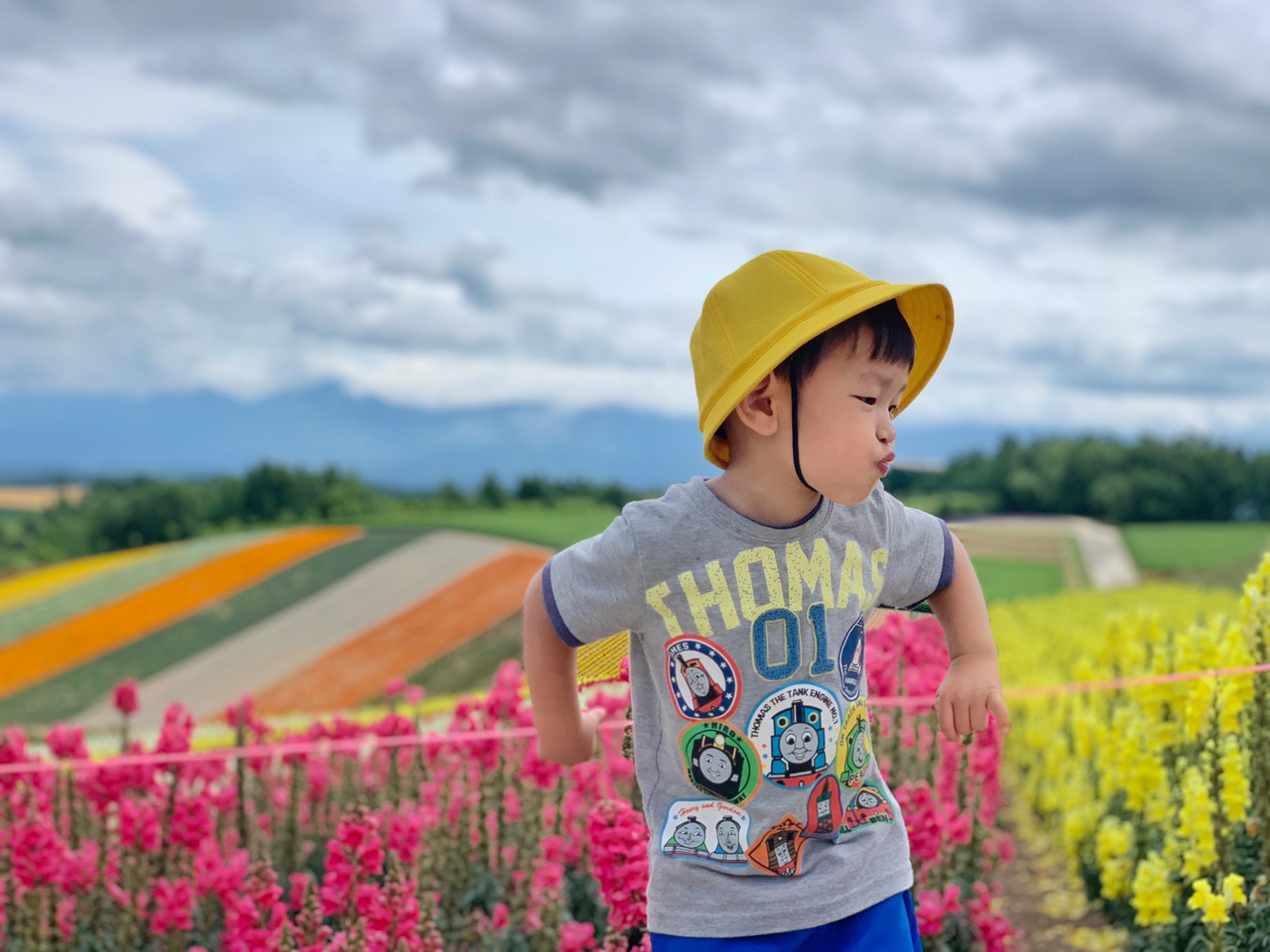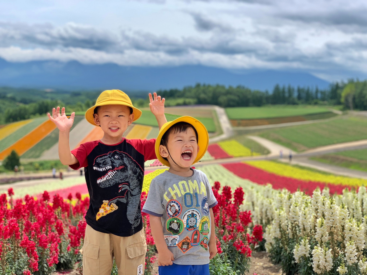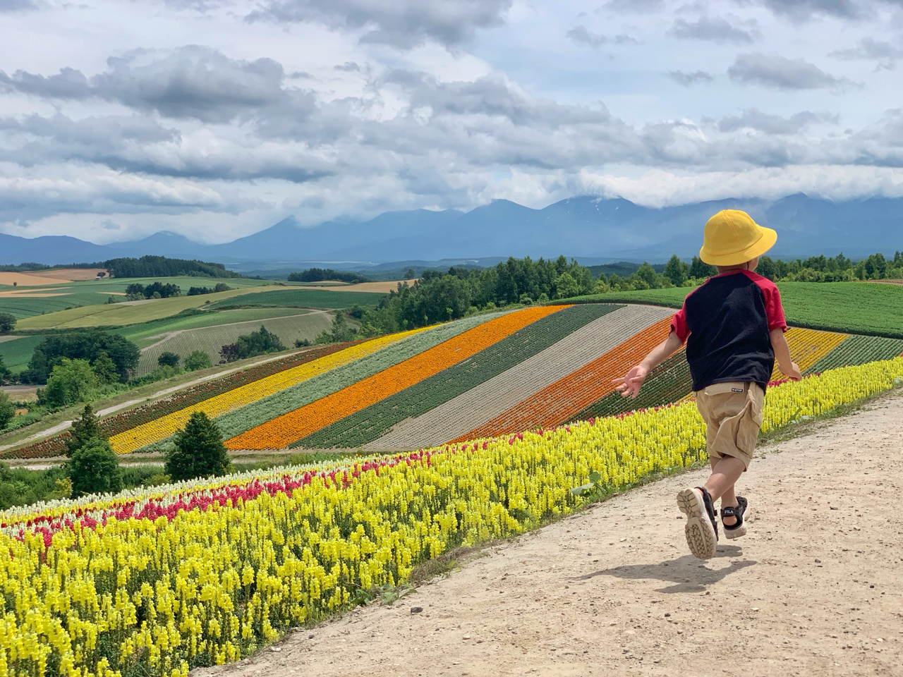 除了喂羊驼和坐拖拉机,小朋友们最大的乐趣就是把自己想象成越野车,在一道道花田间的土路上飞奔,还要求我也要跟他们一起比赛。