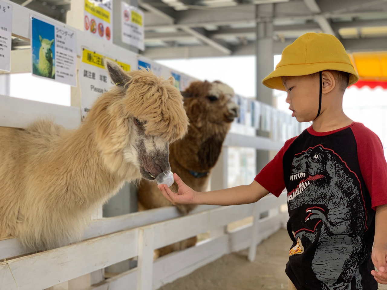 1.羊驼牧场不是露天的,羊驼也不是散养的,所以体验一般,扭蛋机里100日元扭一份饲料喂喂,和上海的那些室内动物园差不多,当然如果没看过羊驼的,还是值得看看的。