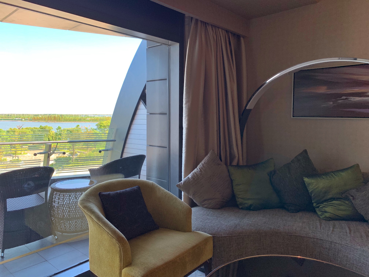 湖景套房有2个很宽敞的阳台,将滴水湖的美景尽收眼底,正有帆船在波光粼粼的湖面上,慢悠悠地划过,这就是度假的画面呐!