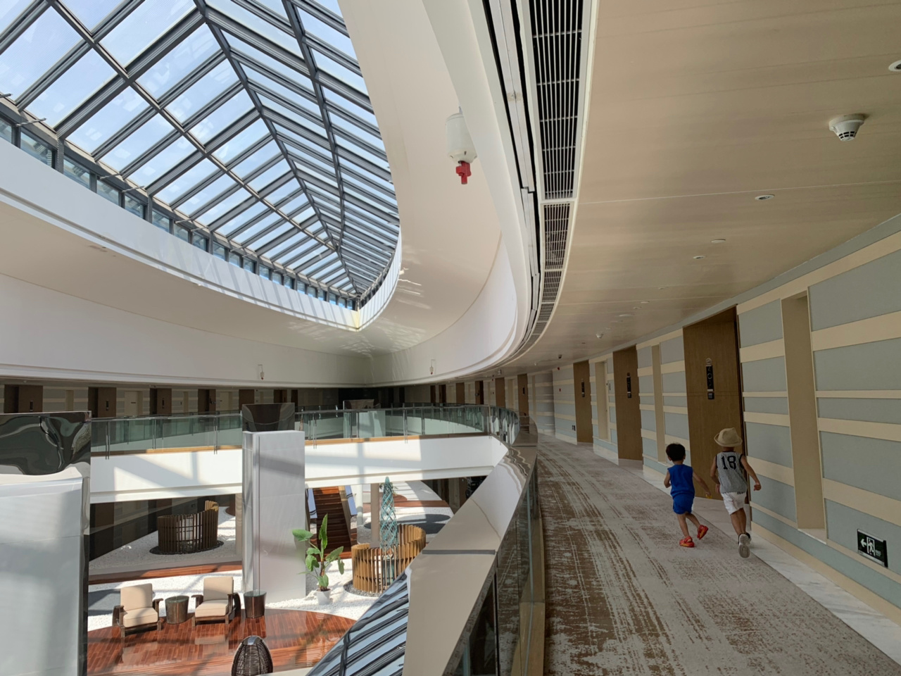 酒店整体是一朵莲花的造型,不光光是航拍好看,走在酒店里也处处都能感受到这种特殊造型所带来的与众不同的感觉。