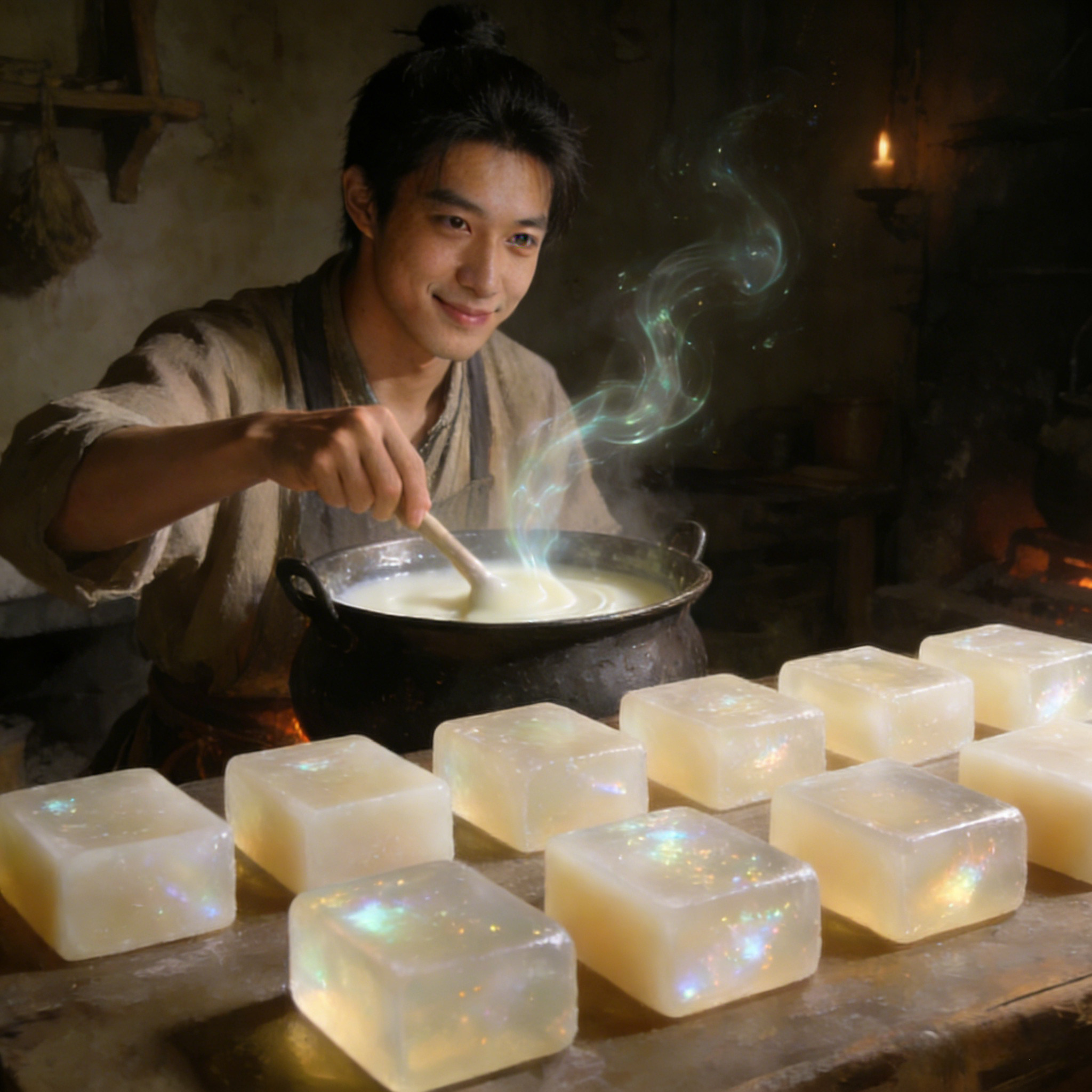 他不再刻意模仿别人的步骤,而是顺着灵力流动的方向,轻轻搅动锅中的混合物。很快,锅中的皂液变得粘稠,散发出一股淡淡的清香,完全没有了以往的腥气。不到一个时辰,十块晶莹剔透、泛着微光的凝脂皂就炼制完成了,每一块都蕴含着浓郁的炼妆灵力,远超普通的凝脂皂。