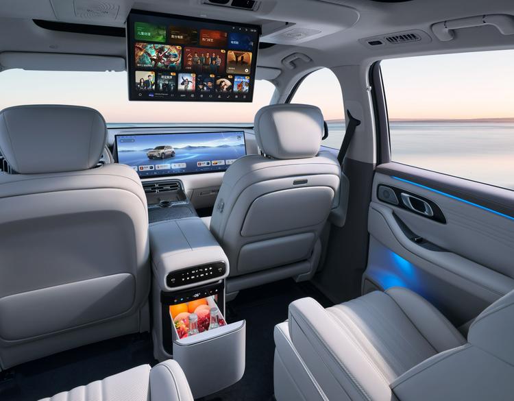 中高配车型还搭载了千里浩瀚H5高阶智驾,内置英伟达Orin-Y芯片+双目摄像头,支持遥控泊车、记忆泊车、循迹倒车、高速/城区领航辅助等,配备有智驾小蓝灯。20万以上的配置搭载有前后排多层隔音玻璃、17.3英寸后排吸顶屏、32英寸AR-HUD抬头显示系统、第二排座椅加热/通风/按摩、后排小桌板、第三排座椅加热、车载冰箱、魔毯智能悬架等。