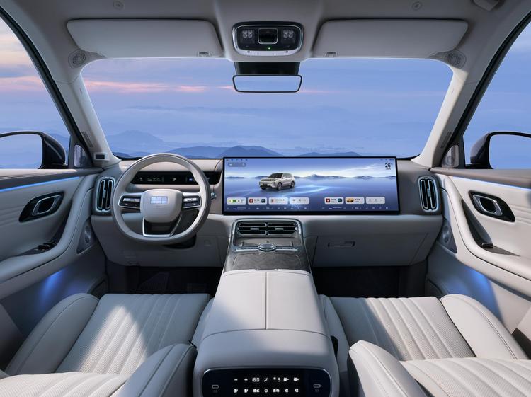 内饰方面,银河M9配备了一块30英寸的贯穿式悬浮大屏幕(中控屏+副驾娱乐屏),不仅屏占比高,而且屏幕中间没有黑边阻断,科技感直接拉满。为了不改变大家的驾驶习惯,银河M9也没有取消仪表盘,而是往主驾驶位前方中控台嵌入了一块12.66英寸的长条形仪表盘,兼顾简约风格的同时也能把车辆行驶信息更好地呈现出来。