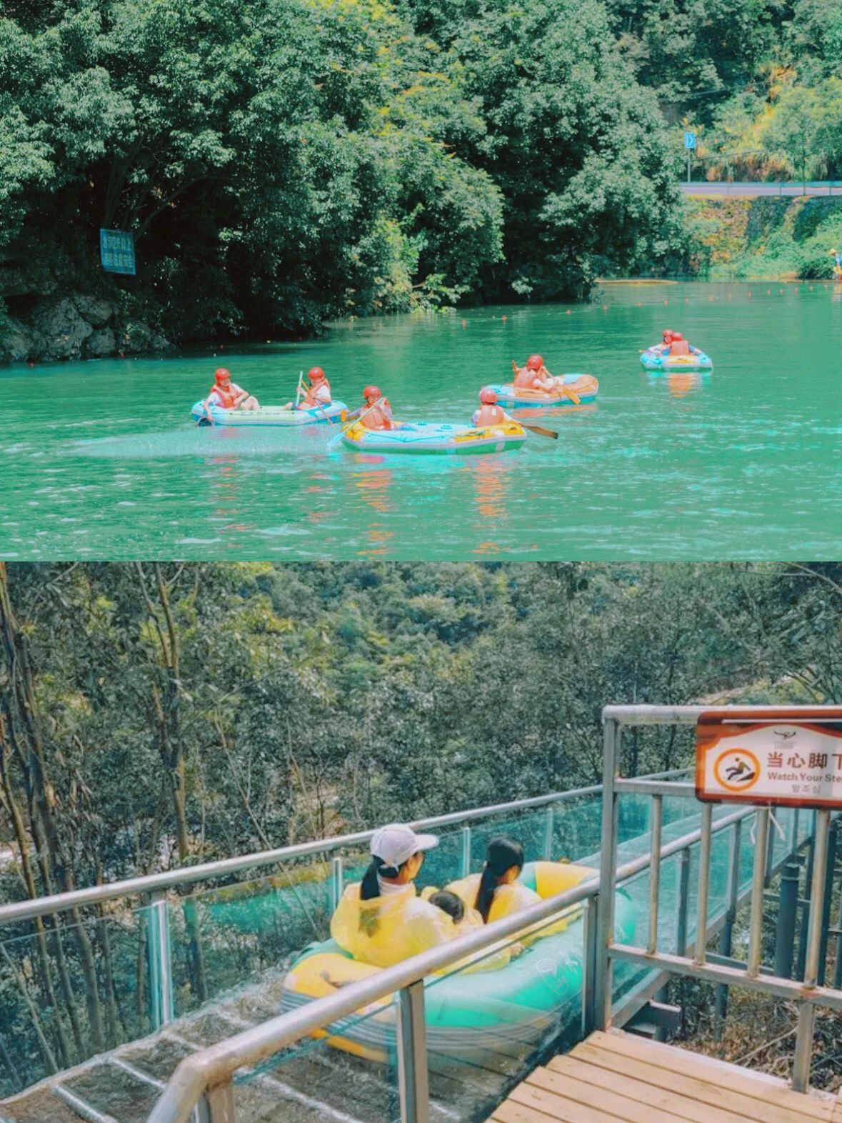 有一个长长的🐲在起点附近,也是玻璃漂流和河道漂流结合的,也可以分开玩。