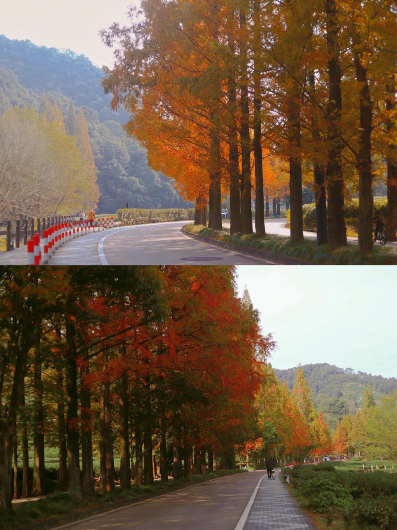 1.梅灵南路适合秋天的时候来,道路两边红彤彤的水杉和绿油油的茶田,太美了!