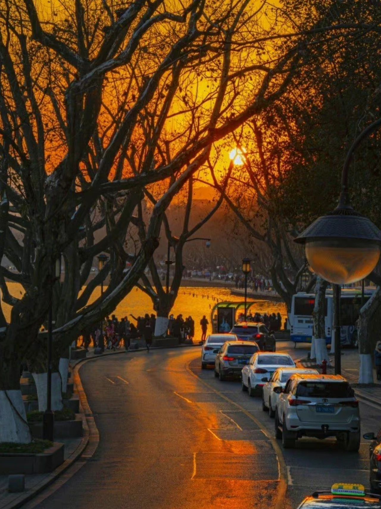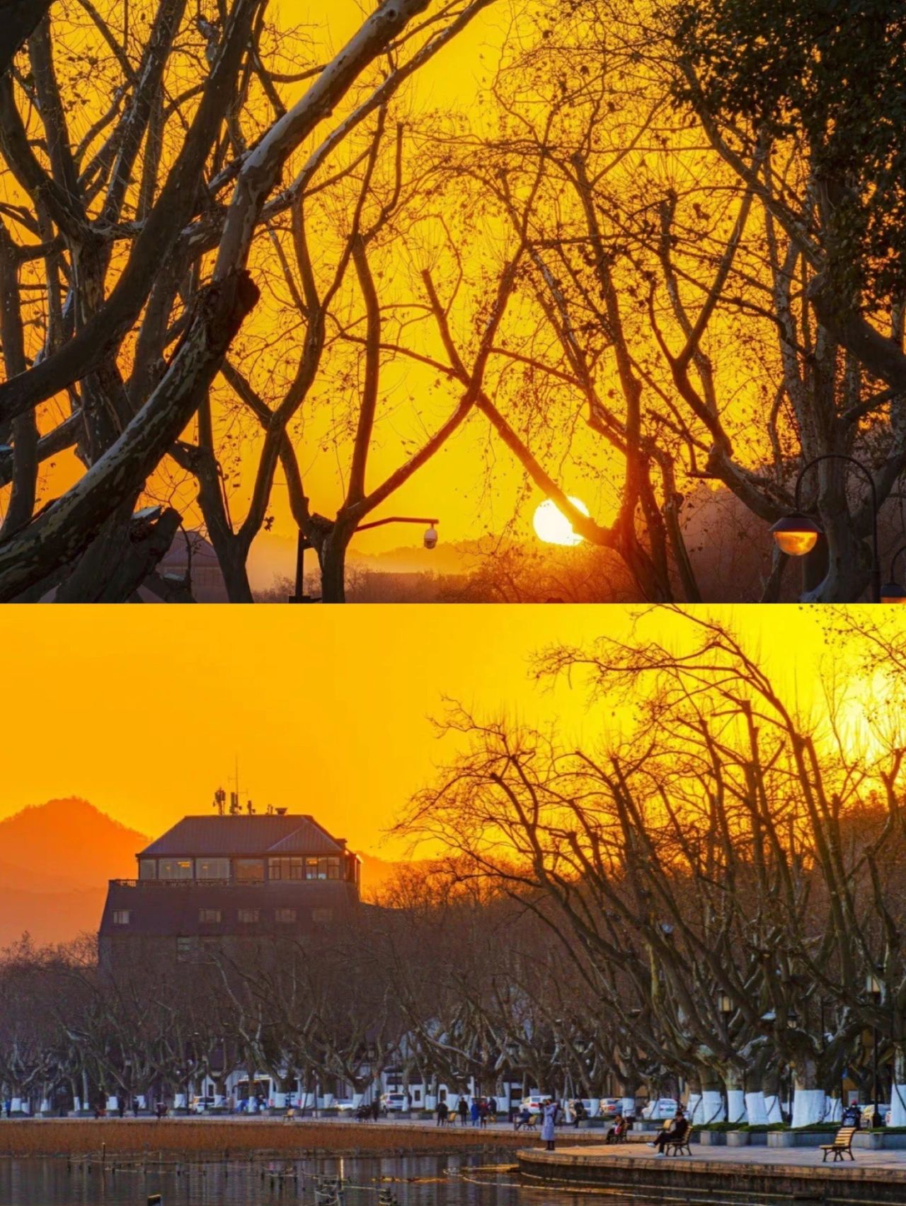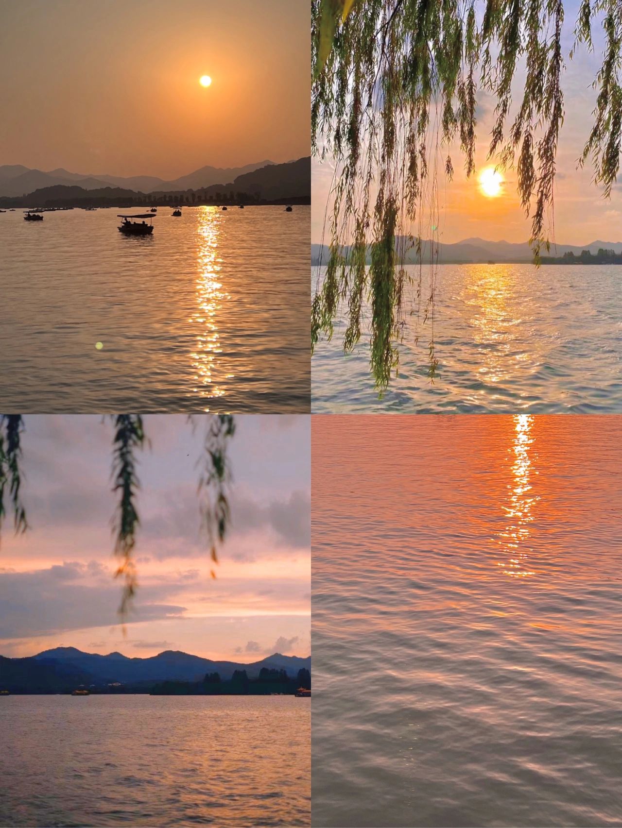 西湖日落也是真的很好看了!静下来看这天从橙色慢慢的变成粉色💕太美好了…一定要去西湖看一次日落!
