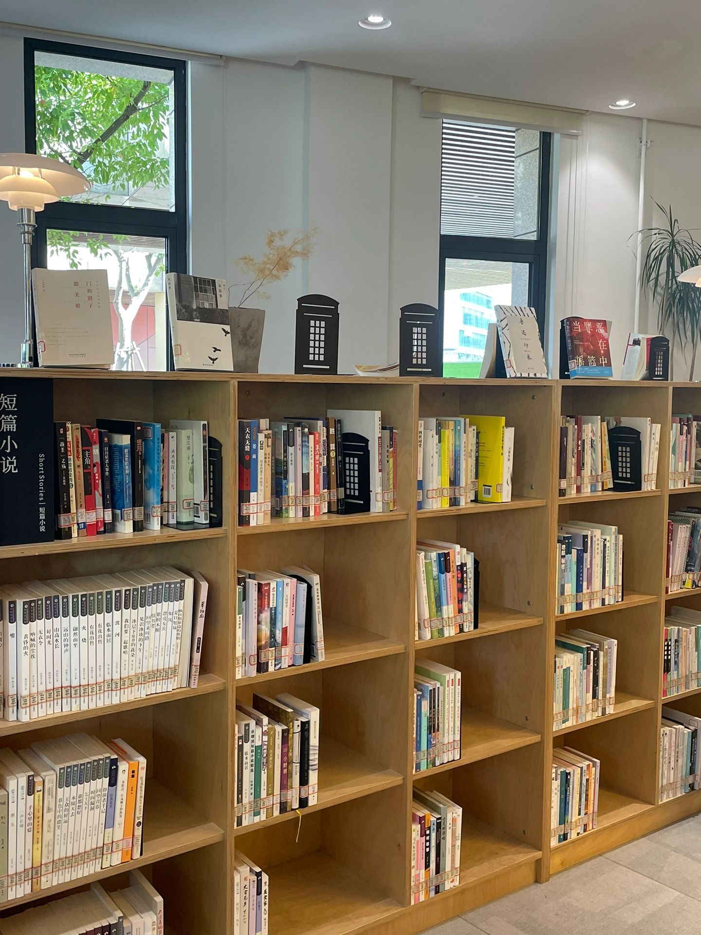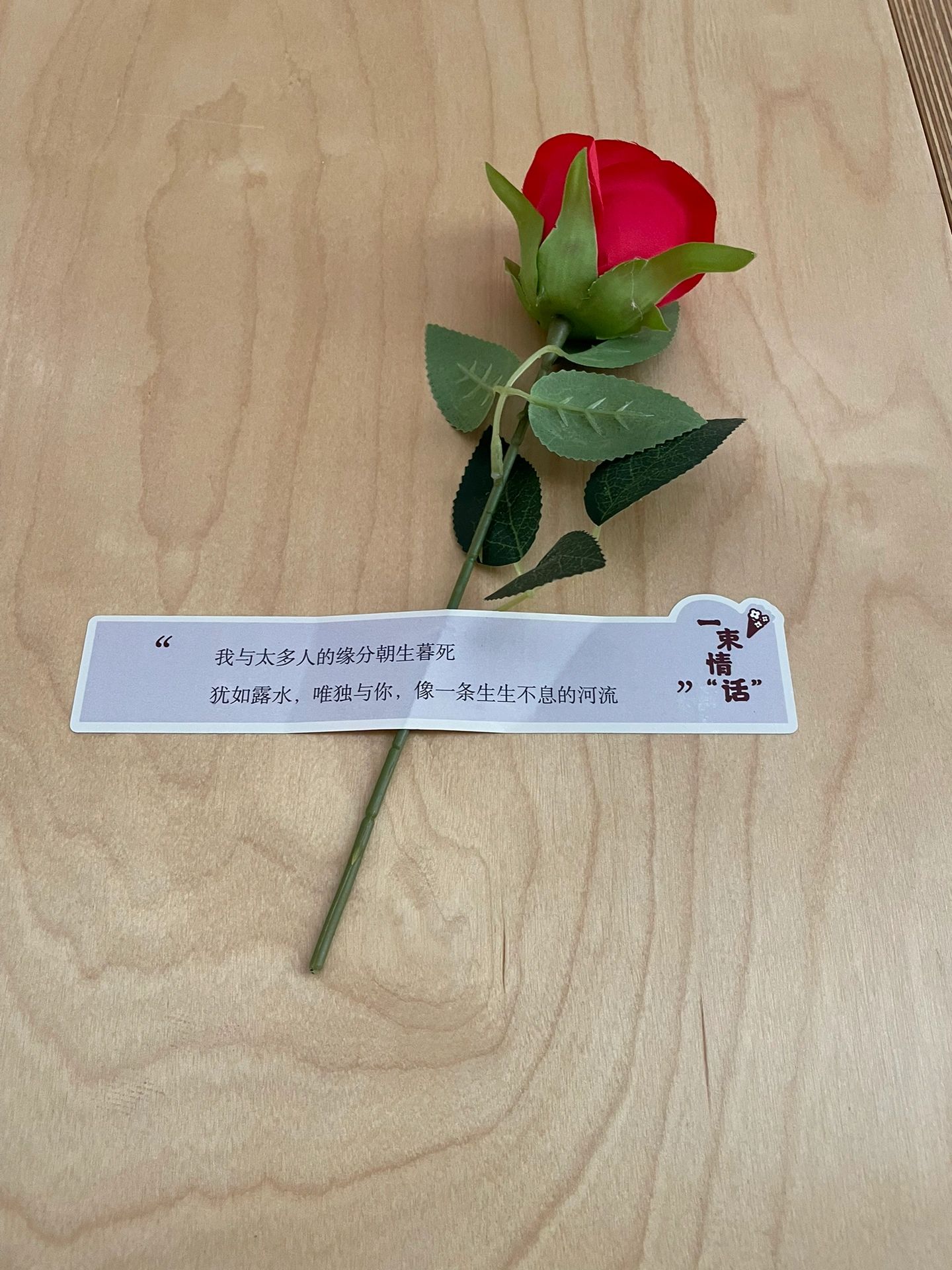 很多书柜一侧贴了🌹玫瑰花和情话,读起来文科生表示很舒适~