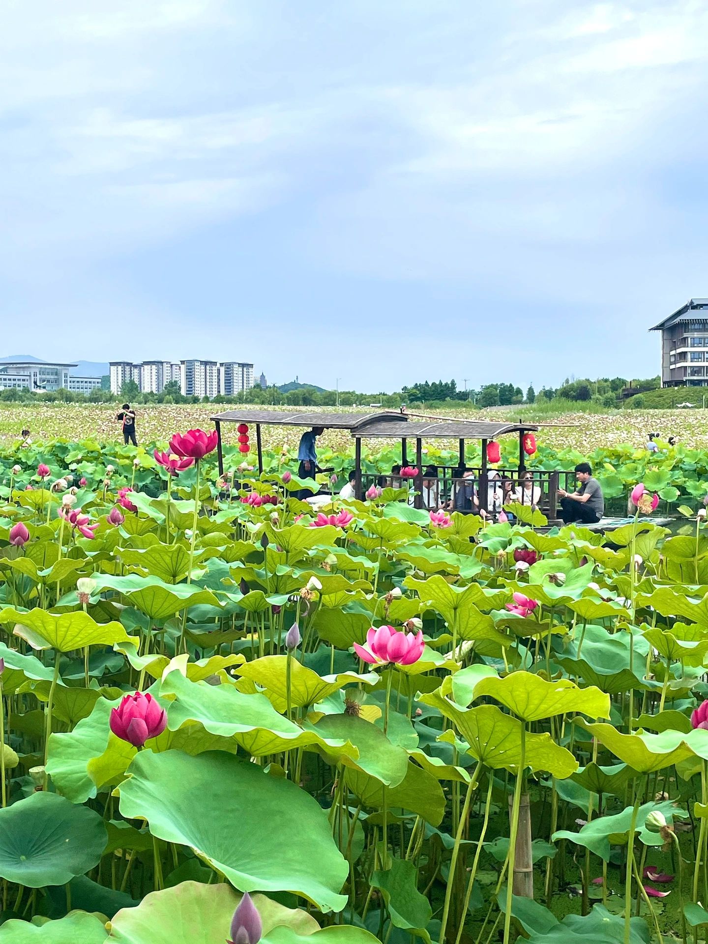 杭州的夏日不能离开荷花,除了人人皆知的西湖,年糕推荐一下湘湖摇橹船,坐船看荷花🪷是杭州限定,更是浪漫情怀呀~